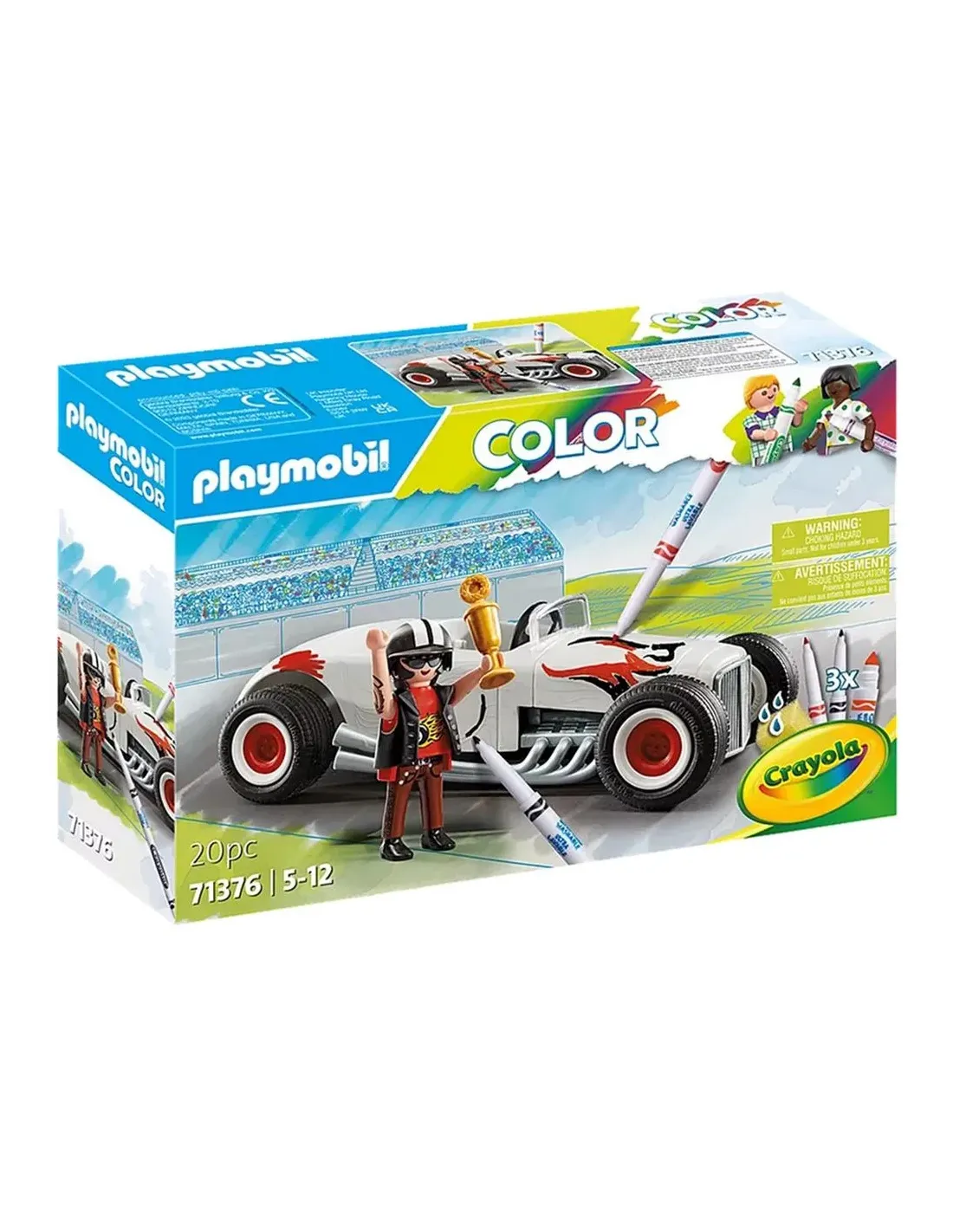 ¡Dale color al juego con PLAYMOBIL Color! Este Hot Rod atrae todas las miradas y se puede pintar y decorar a gusto con los rotuladores incluidos. Ya sea con llamas peligrosas, rayas dinámicas o marcas dederrape: la pintura se puede lavar fácilmente para divertirse sin fin. Incluye una rampa con un barril de aceite.¡Han vuelto! Después de 45 años, la serie única PLAYMOBIL Color está haciendo su regreso. En colaboración con la creativa compañía CRAYOLA, aparecen cinco nuevos sets con figuras básicas blancas ymuchos accesorios que se pueden diseñar individualmente y lavar nuevamente. De esta manera, los niños pueden pintar una y otra vez a sus figuras favoritas. Los sets individuales diseñables de PLAYMOBILColor fomentan de manera lúdica la creatividad y las habilidades motoras finas de los pequeños fans del bricolaje. Los aficionados a los autos también obtienen lo suyo con PLAYMOBIL Color. Ya sea con llamaspeligrosas, rayas dinámicas o marcas de derrape, un coche de carreras diseñado por uno mismo seguramente llamará la atención de todos.