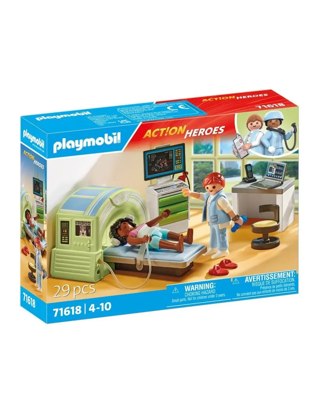 Detalles del artículoDescripción PLAYMOBIL 71618 Resonancia Magnética con PacienteEAN 4008789716187Número de fabricante 71618Impuestos 19 por ciento %marca PLAYMOBILEdad mínima recomendada 4 años.Edad máxima recomendada 10 años.Peso 234,8 gramosTamaño del paquete (largo x ancho x alto) 18,7 x 14,2 x 4,7 CM