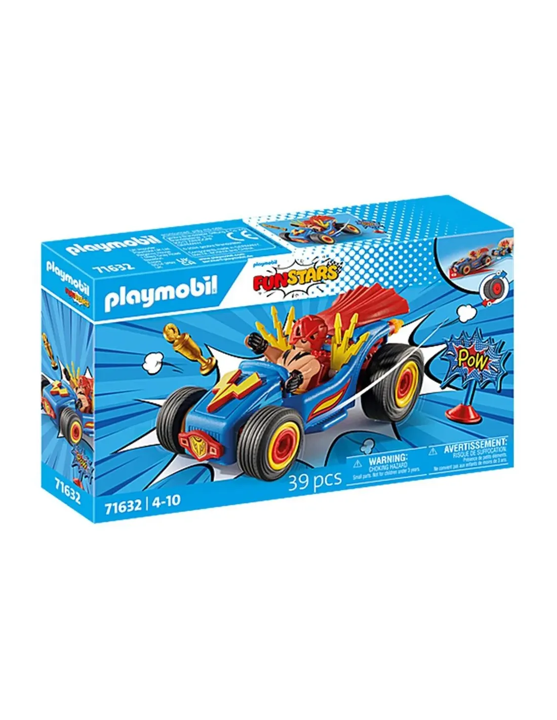 Emocionantes carreras con el kart Racing Luchador y accesorios.En sus marcas, preparados, listos. Sin duda, los pilotos salen disparados con su kart a toda velocidad. Este kart loco de PLAYMOBIL es fantástico para los fans de la velocidad. El kart puede serrediseñado con varios accesorios.