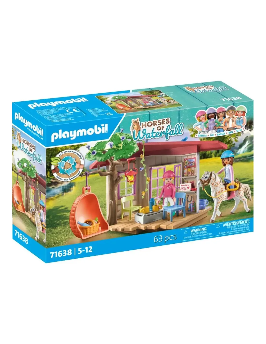 Vive emocionantes aventuras a lomos de un caballo con la Caseta club de equitación de PLAYMOBIL, fabricada con más de un 80% de materiales sostenibles.Los aficionados y las aficionadas a los caballos de Waterfall han construido una encantadora casa club con un acogedor columpio y un escondite secreto. El lugar es perfecto para tomarse un respirodespués de un largo paseo o para una reunión secreta entre los miembros del club. Isabella y Amelia siempre tienen a mano una taza de chocolate caliente y deliciosos panecillos. El caballo Hazelnutescucha las risas de sus amigos y el piar de los pájaros.Dato curioso: La mayoría de las insignias de la pared las ganó Zoe.Todos los juegos de Horses of Waterfall están fabricados con una media de más del 80% de materiales sostenibles.