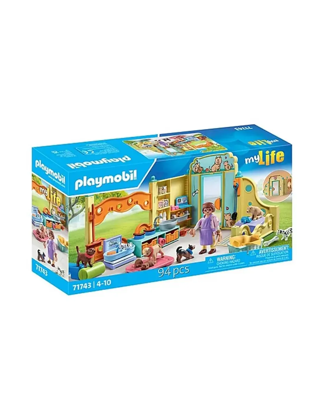 -NÚMERO DE ARTÍCULO 71743-DIMENSIONES DEL ENVASE 34.8 x 18.7 x 9.0 cm-DIMENSIONES DEL PRODUCTO 37.2 x 19.6 x 35.8 cm-PESO 431 g-EDAD RECOMENDADA A partir de 4 años-TIPO DE JUEGO Juego de rol creativo Cuidado de mascotas-CONTENIDO DEL PRODUCTO Figuras: 1 hombre Animales: 2 cachorros de perro tumbados, 1 cachorro de pastor alemán, 2 cachorros de dálmata, 1 carlino de pie, 1 cachorro de perro de pie, 1 cachorro de perro sentado Accesorios: 1 mueble alto con puerta, 2 muebles altos laterales con estantes, 1 fregadero, 1 balanza, 1 caja con asas, 2 cestas para cómoda, 1 cama para perro, 1 lavabo, 2 salchichas, 3 collares para perro, 1 silbato, 1 correa doble, 2 cuencos de comida, 1 esponja, 2 latas de comida, 1 escoba, 1 pala pequeña con escoba, 1 par de tijeras, 1 maquinilla de afeitar, 1 cinta métrica, 1 botella de spray, 2 libros, 1 bolígrafo, 1 cámara, 1 delantal, 1 reloj, 1 ordenador portátil, 2 botellas de leche, 4 golosinas para perros, 1 periódico, 1 topo de juguete, 2 obstáculos de juego, 1 toalla, 1 manta para perros, 1 alfombra, 2 cestas grandes, 1 taburete, 2 paquetes de comida-CARACTERÍSTICAS PRINCIPALES Guardería equipada para el cuidado de cachorros Incluye múltiples razas y posturas de cachorros Zona de aseo y lavado con fregadero y accesorios Correa doble para paseos divertidos Espacio para almacenar todos los accesorios incluidos Escenario ideal para recrear rutinas de cuidado y juego de mascotas Instrucciones de montaje incluidas-BENEFICIOS Fomenta la creatividad y el juego de simulación Permite aprender sobre el cuidado de los animales de compañía Ideal para juegos individuales o en grupo Accesorios detallados que enriquecen la experiencia de juego Regalo perfecto para amantes de los perros y las mascotas Fabricado con materiales resistentes para una diversión duradera