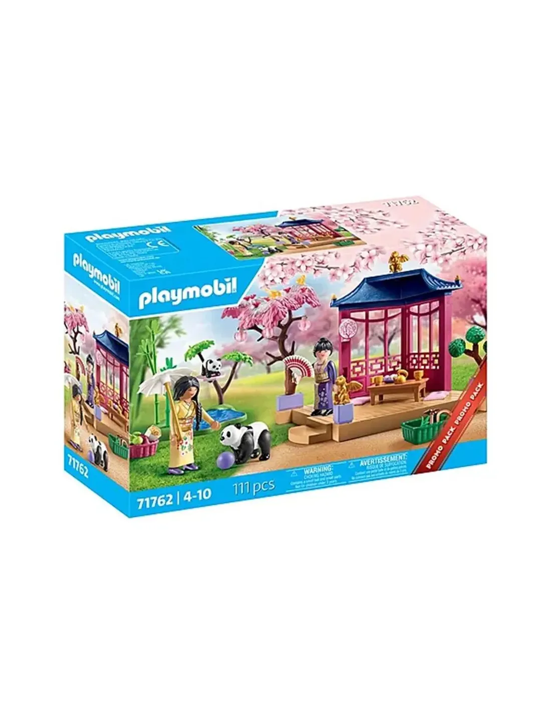 Características del PLAYMOBIL - Jardín asiático con pandaEl Jardín asiático con panda de PLAYMOBIL es una invitación a explorar un mundo de tranquilidad, naturaleza y cultura oriental en formato miniatura. Diseñado para niños a partir de 4 años, este set ofrece una experiencia lúdica rica en detalles, ideal para fomentar la imaginación, la creatividad y el aprendizaje cultural a través del juego simbólico. Con figuras, animales y accesorios temáticos, los más pequeños podrán recrear escenas entrañables en un entorno inspirado en los jardines tradicionales de Asia.Un espacio vivo que conecta con la naturalezaEl set estimula el cuidado y la observación de la naturaleza mediante elementos como bonsáis, cerezos en flor y plantas de bambú. Una forma de acercar a los niños a la belleza natural mientras cuidan su propio jardín de juego.Incluye 1 cerezo con flores, 3 plantas de bambú y 1 bonsáiAnimales adorables como 1 panda adulto y 1 cría de pandaDecoración realista con farolillos y elementos floralesJuego simbólico con valor culturalEste set ofrece una experiencia enriquecedora que combina gastronomía, tradición y momentos compartidos. Los niños pueden simular una ceremonia del té, compartir dulces típicos y crear escenas de juego que fomentan la expresión emocional y la cooperación.Incluye tetera, tazas, plato y 4 caramelos2 figuras femeninas y numerosos accesorios de jardín y cocinaRecrea costumbres como comer con palillos y servir téDetalles que estimulan la narrativa y la creatividadCada rincón del jardín está pensado para inspirar historias: desde el estanque koi hasta las figuras de dragón, pasando por las herramientas de jardinería y los cojines para sentarse. Todo está orientado a potenciar el juego libre y creativo.Zona de estanque con peces y detalles acuáticos2 figuras de dragón incluidasSombrilla, abanico y cojines para simular momentos de relaxFácil montaje y contenido completoEl set viene con instrucciones detalladas para un montaje intuitivo y seguro. La presentación es compacta y fácil de almacenar o transportar.Incluye instrucciones paso a pasoDimensiones del producto montado: 38,8 x 19,5 x 29,6 cmPeso total: 547 gContenido del setFiguras: 2 mujeresAnimales: 1 panda, 1 bebé panda, 2 pájarosEdificio central y zona de estanque3 plantas de bambú, 1 rama con hojas y plataforma1 pelota, 2 manzanas, 1 bonsái, 1 cerezo con flores y 3 farolillos1 abanico, 1 sombrilla, 1 cesta, 1 planta, 2 jardineras, 1 caja2 herramientas de jardinería, 1 tijera1 mesa, 2 cojines, 2 tazas, 1 tetera, 2 palillos, 1 plato, 4 caramelos2 figuras de dragónOtras especificacionesNúmero de artículo: 71762Dimensiones del envase: 28,4 x 18,7 x 9,3 cmEdad recomendada: A partir de 4 años