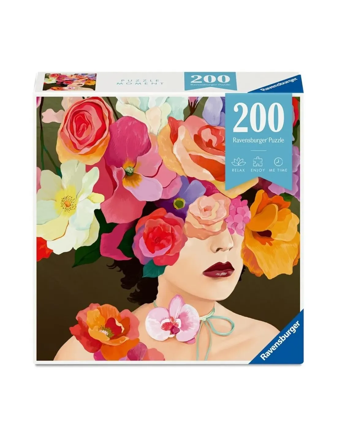 Características del Puzzle Moment Rosa 200 Piezas RavensburgerEl Puzzle Moment Rosa de 200 piezas de Ravensburger es una opción ideal para quienes buscan un momento de desconexión y creatividad. Diseñado para ofrecer una experiencia relajante, combina una ilustración artística llena de color con un formato compacto y accesible, perfecto tanto para principiantes como para aficionados a los puzzles.Diseño artístico lleno de colorEste puzzle destaca por su ilustración vibrante y expresiva, protagonizada por un rostro rodeado de flores en tonos intensos y variados. Su composición lo convierte en una pieza visualmente atractiva que disfrutarás tanto durante el montaje como una vez completado.Ilustración floral con estilo moderno y creativoColores vivos que facilitan la identificación de piezasIdeal para decorar una vez finalizadoFormato compacto y experiencia relajanteLa colección Puzzle Moment está pensada para ofrecer pausas de entretenimiento en el día a día. Con 200 piezas, proporciona un equilibrio perfecto entre desafío y rapidez, permitiendo completar el puzzle en una sola sesión.200 piezas: dificultad media-bajaPerfecto para sesiones cortas de entretenimientoDiseñado para fomentar la relajaciónCalidad RavensburgerRavensburger es sinónimo de precisión y durabilidad. Cada pieza está fabricada con materiales de alta calidad que garantizan un encaje perfecto y una experiencia satisfactoria desde la primera hasta la última pieza.Piezas resistentes y duraderasEncaje preciso sin holgurasAcabado de alta calidad