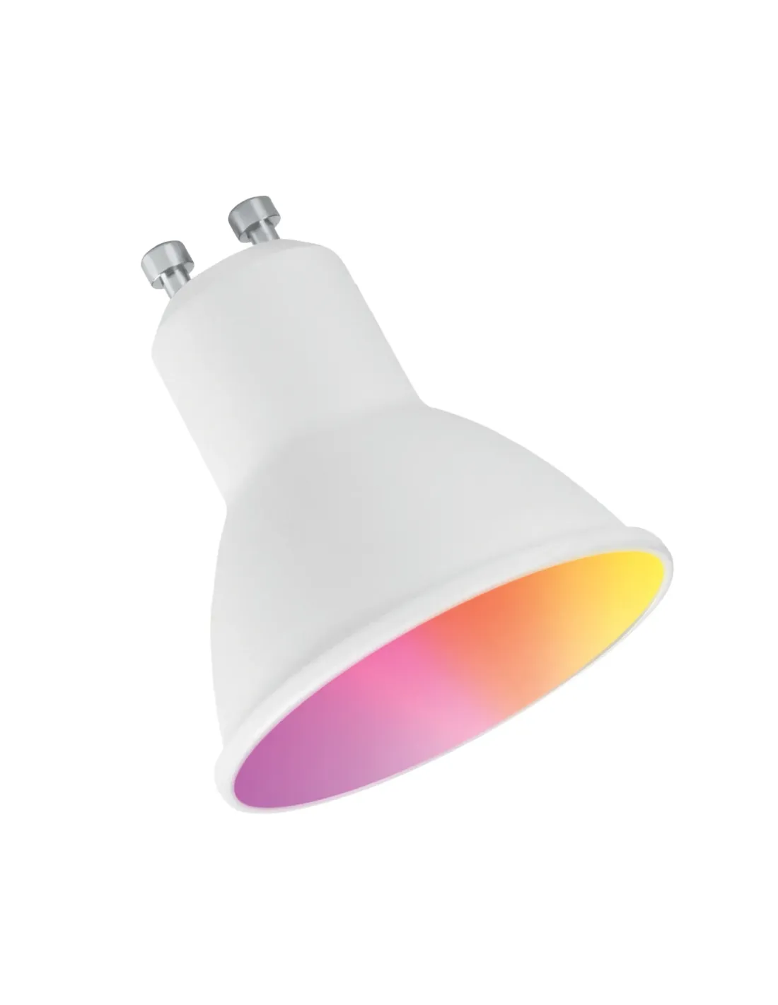 El color y la intensidad de la bombilla inteligente GU10 de muvit iO es regulable a través de tu smartphone (iOS y Android). Con sus 25.000 horas de vida y su luz LED multicolor y blanca, esta bombilla esideal para brindar una iluminación inteligente para tu casa. Llena de color tu hogar y dale inteligencia de la mano de muvit iO Home. Crea escenas automatizadas y programa el encendido y apagado de tus luces.Compatible con Google Home, Amazon Alexa y SiriControl remoto mediante SmartphoneMaterial: PCWiFi: 2.4GHzAPP: muvit iO HomeBase: GU10Formato: spot/focoPotencia: 5.5WEquivalencia: 5.5W=45WFlujo luminoso: 400 lmColor: RGB + Blanco cálido + Blanco fríoTemperatura: 2700K-6500KRegulable: color y temperatura (CCT)Ángulo haz de luz: 110ºDimensiones: Ø50*H56Vida útil: 25000 hVoltaje de entrada: AC 100-240V 50/60HzClase de eficiencia energética (EU 2017/1369): Categoría FIncluye portalámparas GU10 (convertidor corriente necesario para pasar de bombilla halógena a LED en instalación existente)muvit iO Home, todos tus productos inteligentes con una única appVive inteligenteControl inteligente de la iluminación de tu hogar, gestión de la seguridad, del gasto energético y el control de encendido y apagado de tus dispositivos, son algunas de las posibilidades que nuestra gamade productos te puede ofrecer, sin necesidad de cuotas, ni contratos.Compatible con asistentes de vozCada uno de nuestros productos está diseñado para funcionar con tu asistente de voz favorito y también de manera independiente a través de la app muvit iO Home.Más que sencilloNuestra APP muvit iO Home te da la posibilidad de enlazar todos tus dispositivos en una sola aplicación, haciendo tu experiencia mucho más sencilla. Olvida por completo el tener que instalar muchasaplicaciones para distintos objetos inteligentes. Además, ofrecemos ayuda local y respondemos a las dudas y comentarios en los Stores en español y portugués.