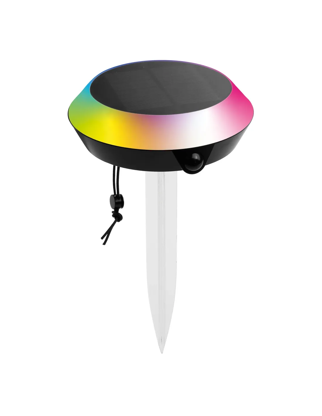 Nuestra luz solar inteligente Bluetooth RGB+CCT con panel solar incorporado y detector de movimiento PIR le ofrece una decoración luminosa original para sus espacios exteriores. Puedes instalarlo enel césped o colgarlo en la pared. Controla la intensidad y el color de la luz solar de jardín, a través de la aplicación muvit iO Home.Aprovecha la luz del día para iluminar tu jardín por la noche con esta lámpara solar inteligente que se conecta al WiFi y es compatible con Alexa