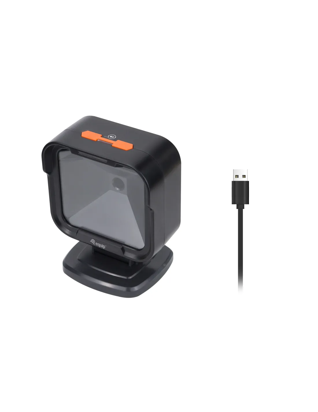 Equip 351028. Tipo: Lector de códigos de barras fijo, Tipo de escaneado: 1D/2D, Tipo de sensor: LED. Tecnología de conectividad: Alámbrico, Interfaz estándar: USB, Longitud de cable: 1,8 m. Color del producto: Negro, Material de la carcasa: Acrilonitrilo butadieno estireno (ABS), Código IP (International Protection): IP54. Alimentación: USB, Voltaje de entrada: 5 V, Corriente de entrada: 0.4 A. Peso: 508 g, Ancho: 146 mm, Profundidad: 114 mm
