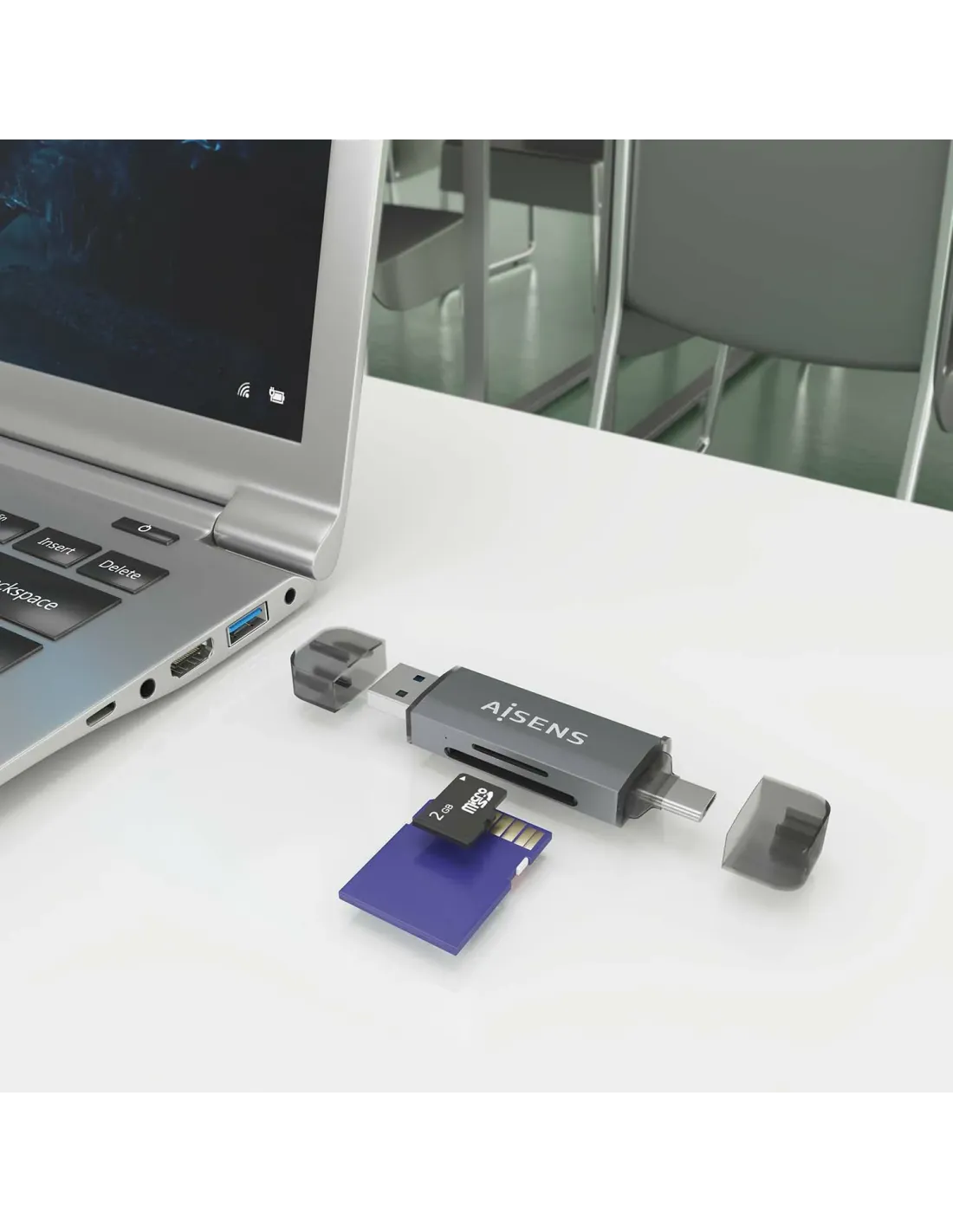 AISENS® – Lector de Tarjetas SD, Micro SD, MMC, Rs-MMC, MMC Micro, USB-A y USB-C, Gris