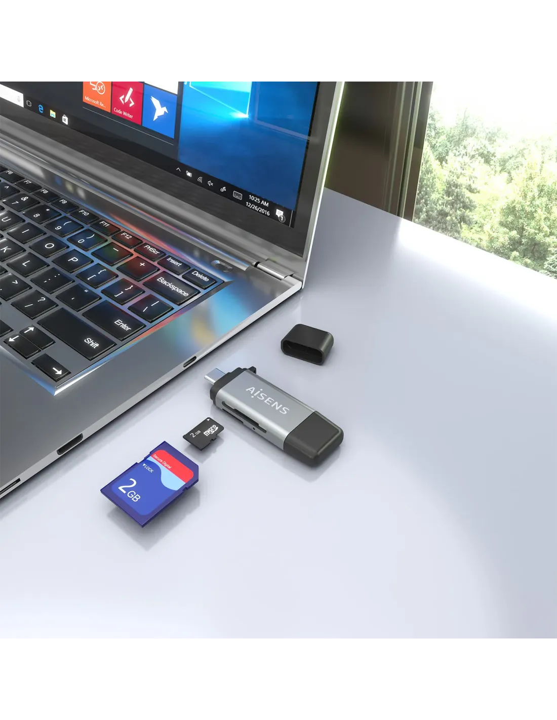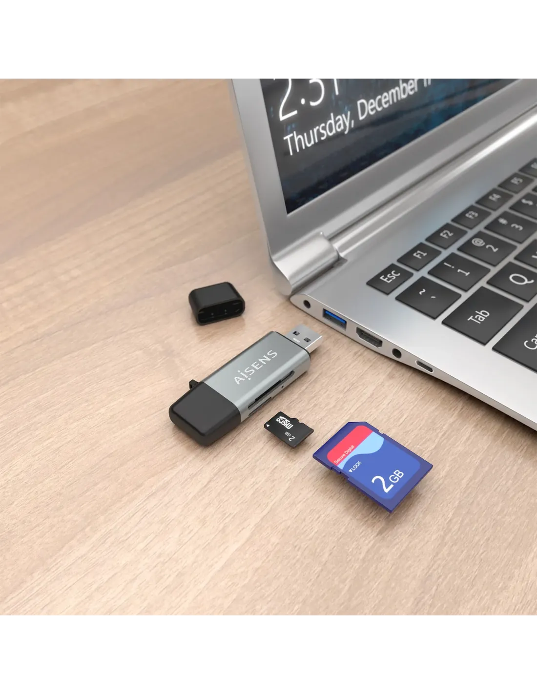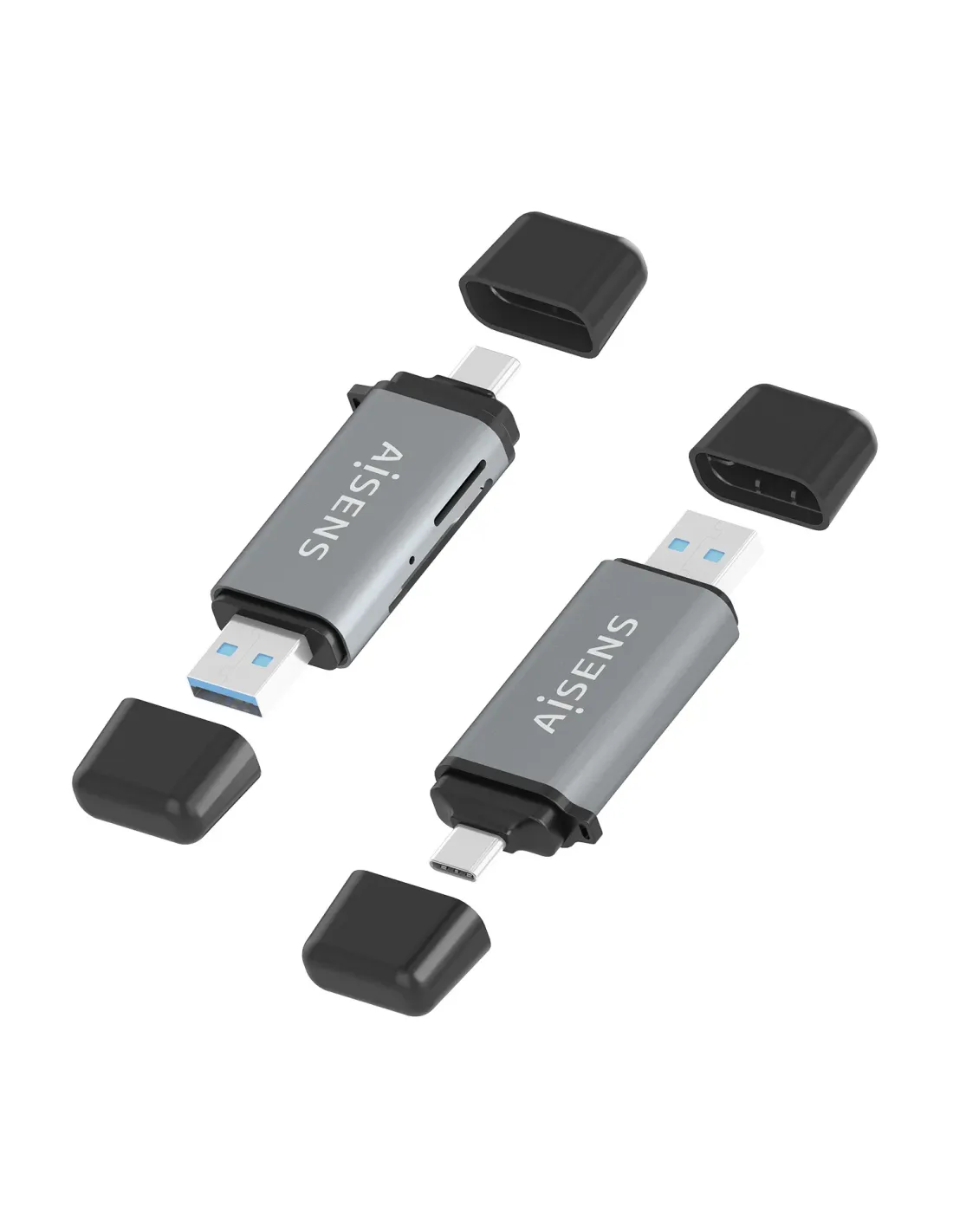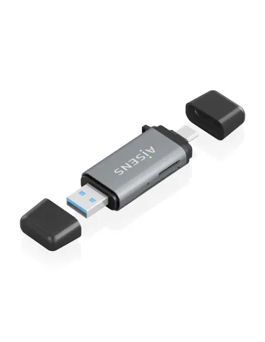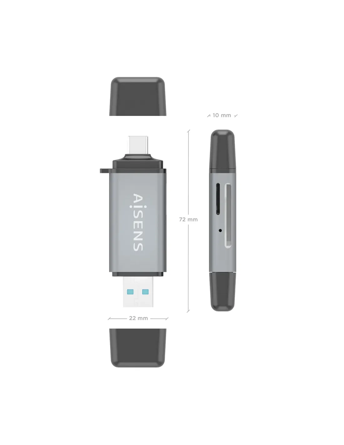 AISENS Lector De Tarjetas SD, Micro SD, MMC, Rs-MMC, MMC Micro, USB-A y USB-C, Gris, MMC, MMCmicro, MicroSD (TransFlash), RS-MMC, Gris, USB 3.2 Gen 1 (3.1 Gen 1) Type-A/Type-C, 22 mm, 72 mm, 10 mm