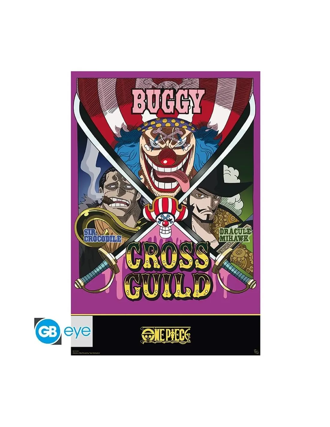 Se ha formado una nueva Alianza Pirata para desafiar el poder de los Marines: ¡Cross Guild! Esta alianza está formada por 2 antiguos Señores de la Guerra de los Mares, Dracule Mihawk y SirCrocodile, encabezados por el nuevo Emperador de los Mares, Buggy. ¡La revolución pirata está en marcha! ¡Únete a la resistencia contra el Marine con este póster de One Piece de GB Eye!- Grosor del papel plastificado: 170g/m². Impresión con proceso offset.- Dimensiones: 91,5 x 61 cm- Certificado FSC: este producto está fabricado con material procedente de fuentes responsables