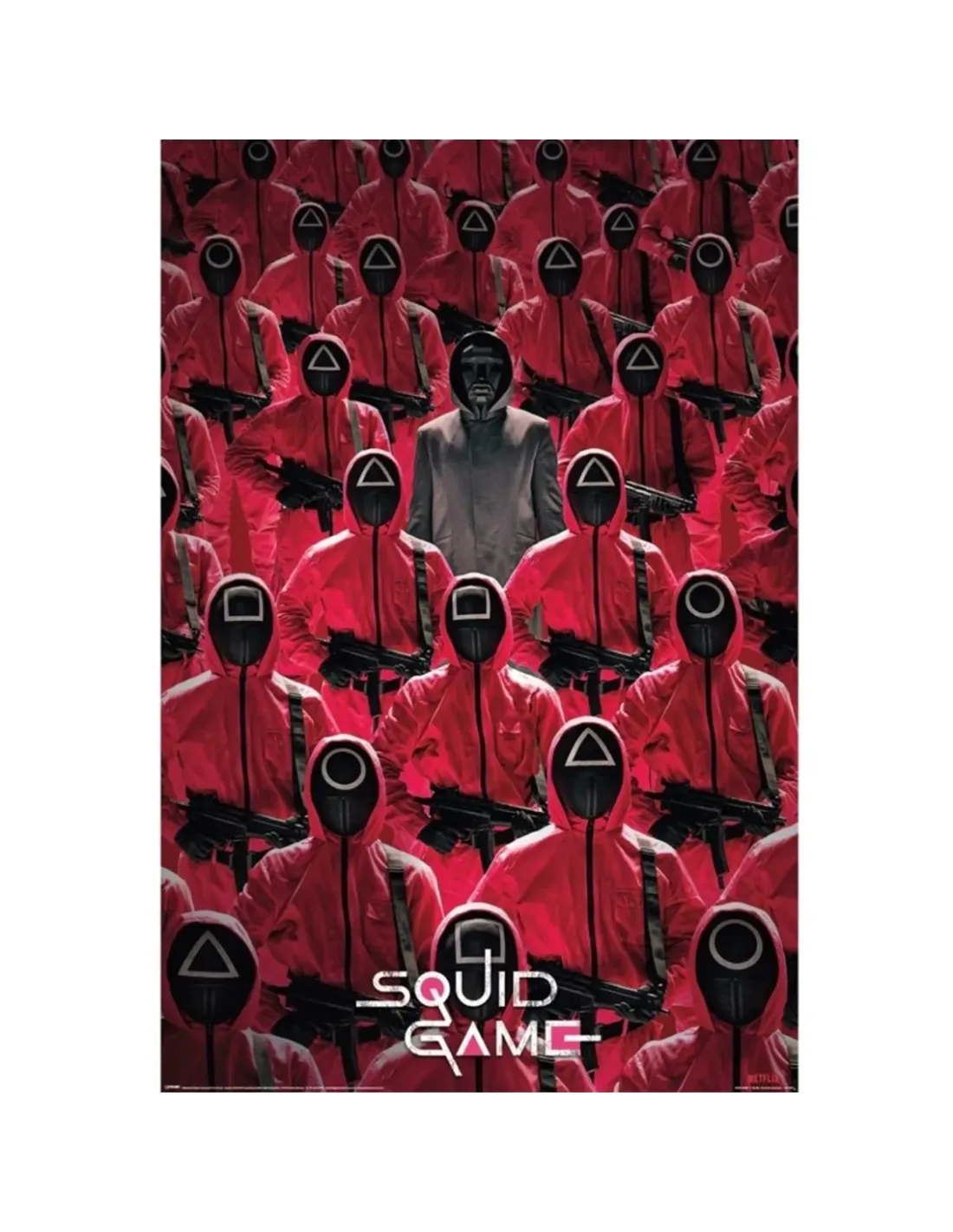 Este increible poster de la serie SQUID GAME o JUEGO DEL CALAMAR,muestra al lider enmascarado de la organización que rige y controla elfamoso Juego Del Calamar y a sus subditos.Este poster tiene un tamaño de 91 x 61 cm y esta impreso en papelsatinado y brillante, de una gran resistencia que permite que no se arrugecon facilidad y su color perdure durante años.