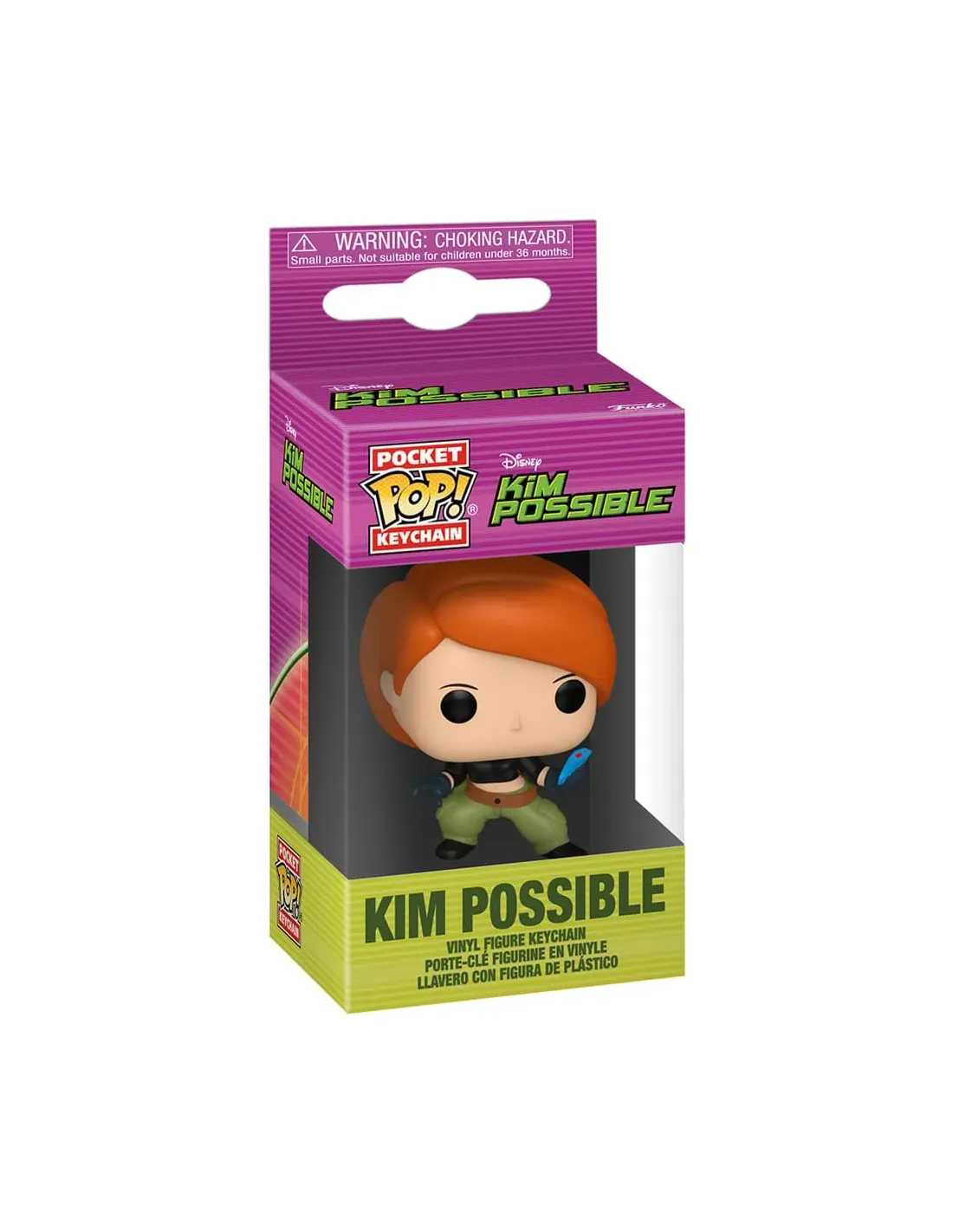 Características del FUNKO POP KEYCHAIN KIM POSSIBLE - KIMEste llavero de Kim Possible en versión Funko Pop Keychain es el complemento ideal para fans de la serie animada de Disney. Compacto, con diseño detallado y con su propia caja expositora, es perfecto tanto para coleccionistas como para llevarlo contigo a todas partes. ¡Haz que la acción te acompañe allá donde vayas!Diseño en miniatura con gran detalleEl llavero presenta una versión reducida del Funko Pop de Kim Possible, manteniendo el estilo característico de la marca y todos los rasgos que identifican al personaje. Su tamaño lo hace ideal para mochilas, bolsos o para exponer junto a tu colección.Figura de aproximadamente 4 cm de alturaDiseño basado en la serie original de DisneyEstilo Funko Pop con cabeza sobredimensionadaIncluye caja protectora con diseño originalEl producto viene en su caja individual decorada, lo que lo convierte en una opción ideal para regalo o para mantener tu colección en perfecto estado. Además, la caja permite una fácil identificación del personaje y protege la figura de golpes o rayaduras.Caja decorativa con ventana frontalIdeal para coleccionistas o fans de Kim PossibleProducto oficial con licencia FunkoOtras especificacionesMaterial: ViniloLicencia: DisneyMarca: FunkoTipo de producto: Llavero coleccionable