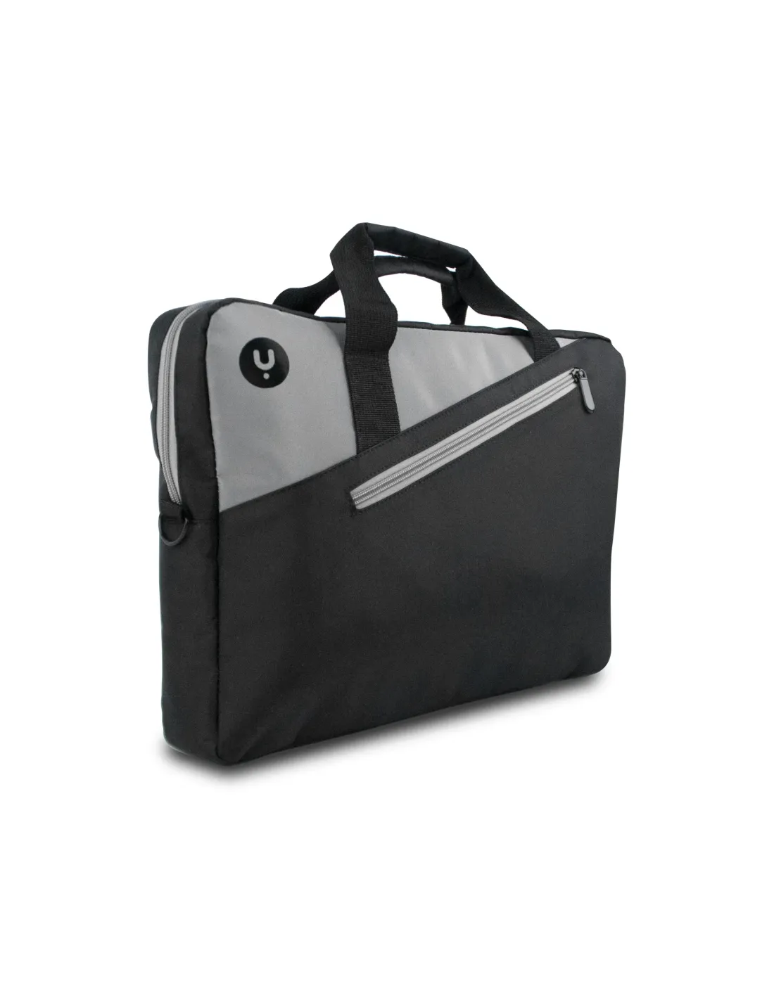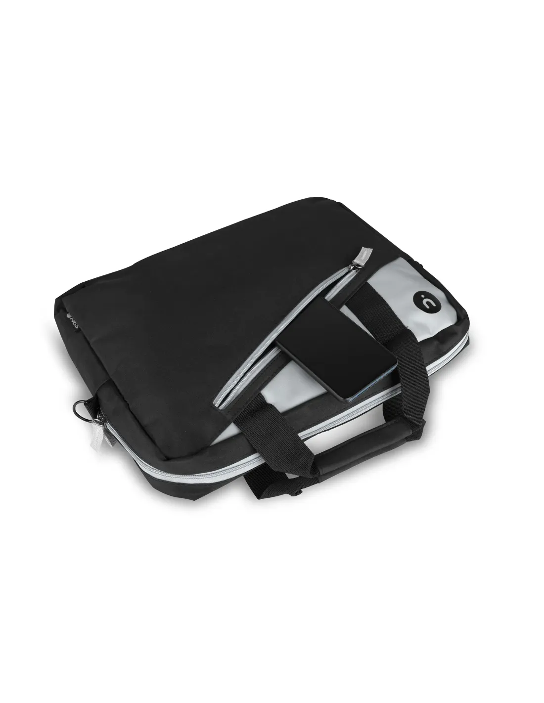 Este maletín de diseño exclusivo combina el color negro con detalles en gris. Ha sido ideado para transportar portátiles de hasta 14".