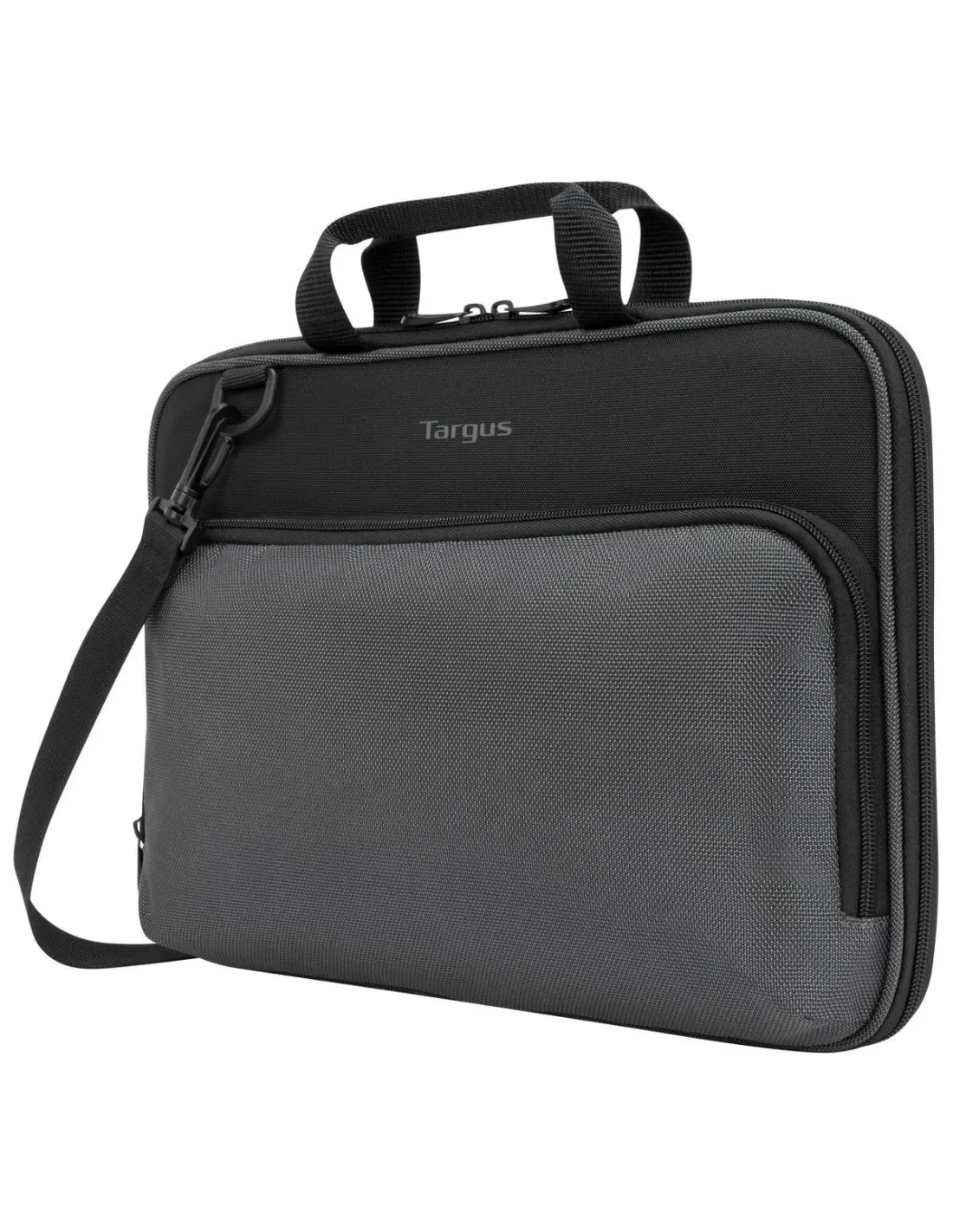 Características de la Funda Targus Work-In Essentials 14"La Targus Work-In Essentials es una funda de transporte diseñada para portátiles de hasta 14 pulgadas, ideal para quienes necesitan una solución funcional, ligera y segura para llevar su dispositivo a cualquier parte. Su diseño minimalista en negro y gris, junto con materiales resistentes, la convierte en una opción práctica tanto para uso profesional como educativo.Diseño funcional y materiales resistentesEsta funda destaca por su construcción en poliuretano y poliéster, lo que garantiza resistencia al uso diario y una protección eficaz frente a salpicaduras y arañazos. Además, su diseño tipo work-in permite utilizar el portátil sin necesidad de sacarlo de la funda.Materiales: Poliuretano y poliésterColor: Negro y grisDiseño tipo work-in con acceso rápido al dispositivoCompatibilidad y portabilidadPensada para portátiles entre 13" y 14" (33 - 35,6 cm), esta funda ofrece un ajuste seguro sin ocupar espacio innecesario. Gracias a su ligereza (350 g) y a las distintas opciones de sujeción, resulta ideal para desplazamientos diarios.Dimensiones: 35 x 25 x 2,5 cmCompatible con portátiles de hasta 14"Incluye asa de agarre rápido y correa para el hombro ajustableOrganización inteligenteMás allá de proteger tu portátil, la Targus Work-In Essentials incorpora compartimentos adicionales que facilitan la organización de accesorios y documentos. Perfecta para el día a día en la oficina, el aula o tus desplazamientos.Bolsillo delantero para cargadores u otros accesoriosCompartimentos internos para tarjetas de visita y tarjeta de IDCorreas internas elásticas para sujetar el portátil durante el usoOtras especificacionesTipo de cierre: CremalleraTipo de producto: Funda de transporte para portátil