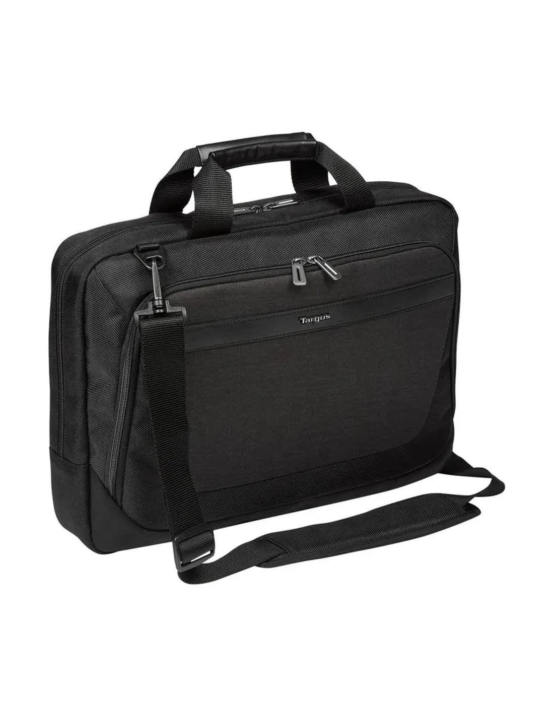 Características de la Targus CitySmart Slimline Topload - funda de transporte para portátilLa Targus CitySmart Slimline Topload es una funda de transporte diseñada para quienes buscan una solución práctica, elegante y segura para su portátil en el día a día. Con un diseño compacto y funcional, es ideal para profesionales y estudiantes que necesitan movilidad sin renunciar a la protección de su equipo.Diseño compacto y funcional para el día a díaSu formato delgado permite transportar el portátil cómodamente sin añadir volumen innecesario. Gracias a su estructura ligera y resistente, resulta perfecta para desplazamientos urbanos, trabajo o estudio.Dimensiones: 41 x 37 x 8 cmPeso ligero: 640 gDiseño slim en color negro y grisProtección acolchada para tu portátilIncorpora un compartimento acolchado específico para portátiles que protege el dispositivo frente a golpes y arañazos. Compatible con equipos de hasta 15,6", ofrece un ajuste seguro durante el transporte.Compatible con portátiles de 14" a 15,6"Dimensiones máximas del portátil: 38,7 x 26,5 x 2,5 cmInterior acolchado para mayor seguridadOrganización inteligente para accesoriosAdemás del compartimento principal, dispone de espacios adicionales para tablet y accesorios personales, permitiendo mantener todos tus dispositivos y objetos esenciales organizados y accesibles.Compartimento para tabletaEspacios para accesorios personalesDistribución interna optimizadaComodidad de transporte versátilLa funda está equipada con múltiples opciones de transporte para adaptarse a cualquier situación. Ya sea en la mano, al hombro o acoplada a una maleta, ofrece una experiencia cómoda y flexible.Asas superiores de transporteCorrea de hombro acolchada y ajustableCorrea para fijación a trolleyMateriales resistentes y cierre seguroFabricada con una combinación de poliéster y poliuretano, esta funda ofrece durabilidad y resistencia al uso diario. Su cierre con cremallera garantiza un acceso rápido y seguro al contenido.Material: poliéster y poliuretanoCierre mediante cremalleraConstrucción resistente al uso diario
