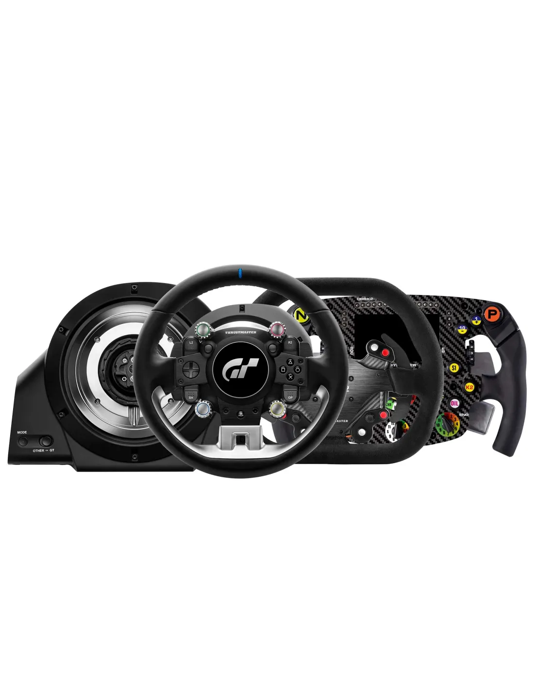 El volante de carreras T-GT II SERVOBASE es una fuente inagotable de tecnologías extremadamente innovadoras, resultado de un estudio en profundidad de todas las sensaciones imprescindibles necesarias para una experiencia de carreras de coches ultrarrealista. Diseñado como el elemento central del ecosistema de carreras de alto nivel de Thrustmaster para PS5, PS4 y PC, T-GT II SERVO BASE es compatible con todos los volantes add-on desmontables de la marca.