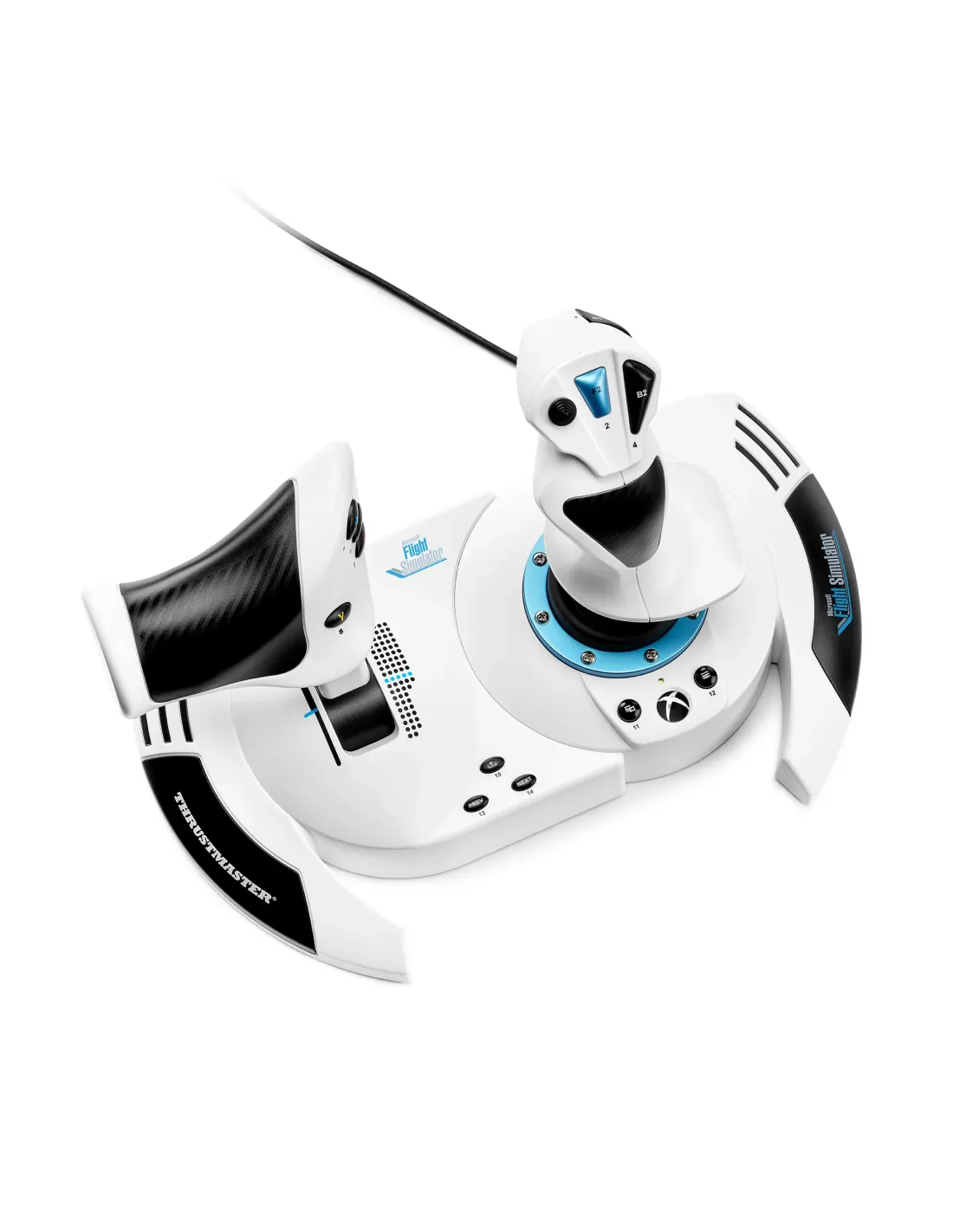 Thrustmaster T.Flight Hotas One Microsoft Flight Simulator Edition. Tipo de dispositivo: Joystick/Palanca de control lateral + cuadrante de aceleración, Plataformas de juego soportadas: PC, Xbox One, Xbox One S, Xbox One X, Botones de función control para gaming: Botón menú, Botón Compartir, View button. Tecnología de conectividad: Alámbrico, Interfaz del dispositivo: USB. Color del producto: Negro, Blanco. Fuente de energía: Cable. Sistema operativo Windows soportado: Windows 10, Windows 11