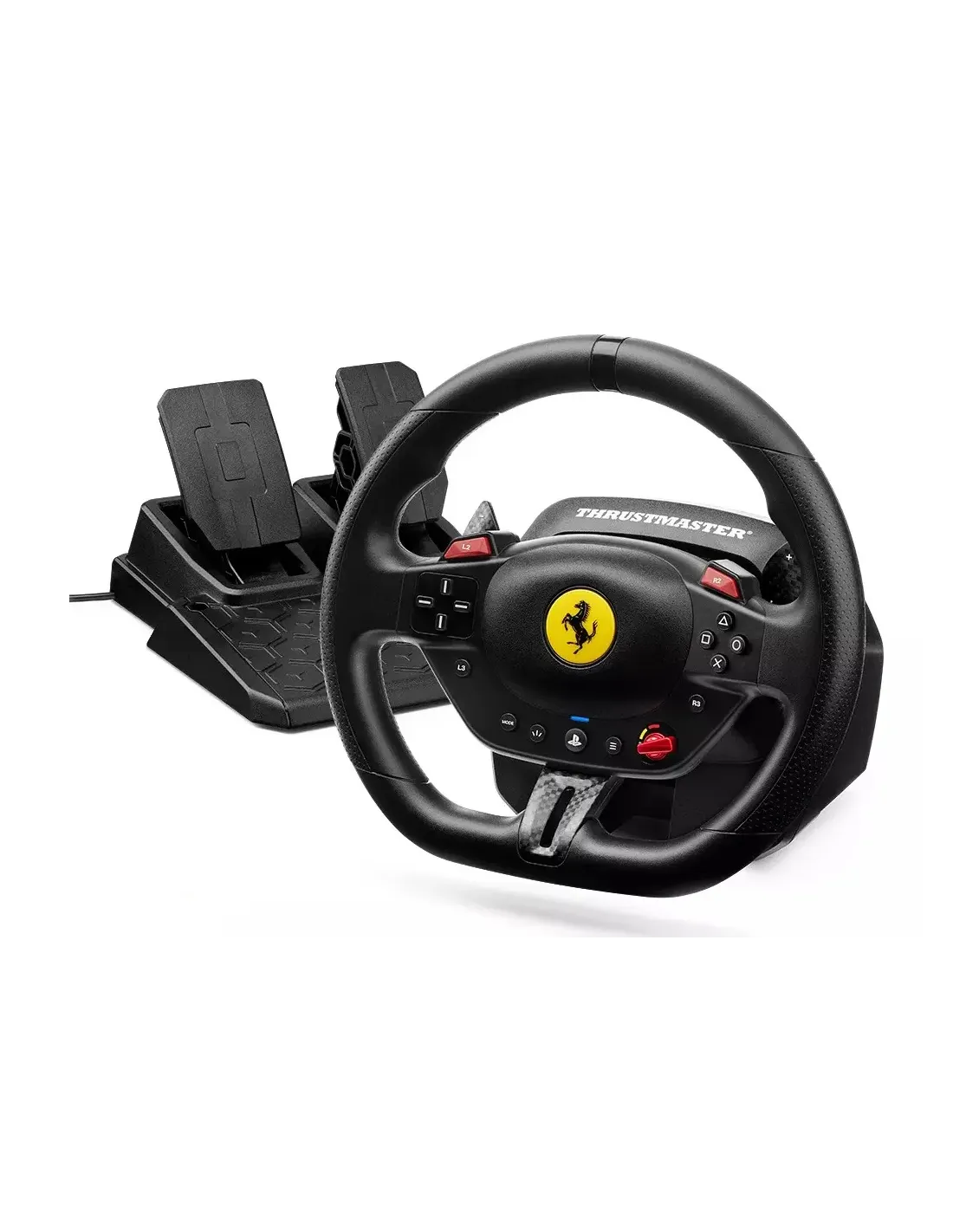Thrustmaster T98-P FERRARI 296 GTB. Tipo de dispositivo: Volante + Pedales, Plataformas de juego soportadas: PC, PlayStation 4, PlayStation 5, Botones de función control para gaming: Botón Opciones. Tecnología de conectividad: Alámbrico. Color del producto: Negro, Compatibilidad: Forza Horizon 5 GRAN TURISMO™ 7 The Crew Motorfest EA SPORTS™ F1® 25 EA SPORTS™ WRC TEST.... Ancho: 255 mm, Profundidad: 245 mm, Altura: 250 mm