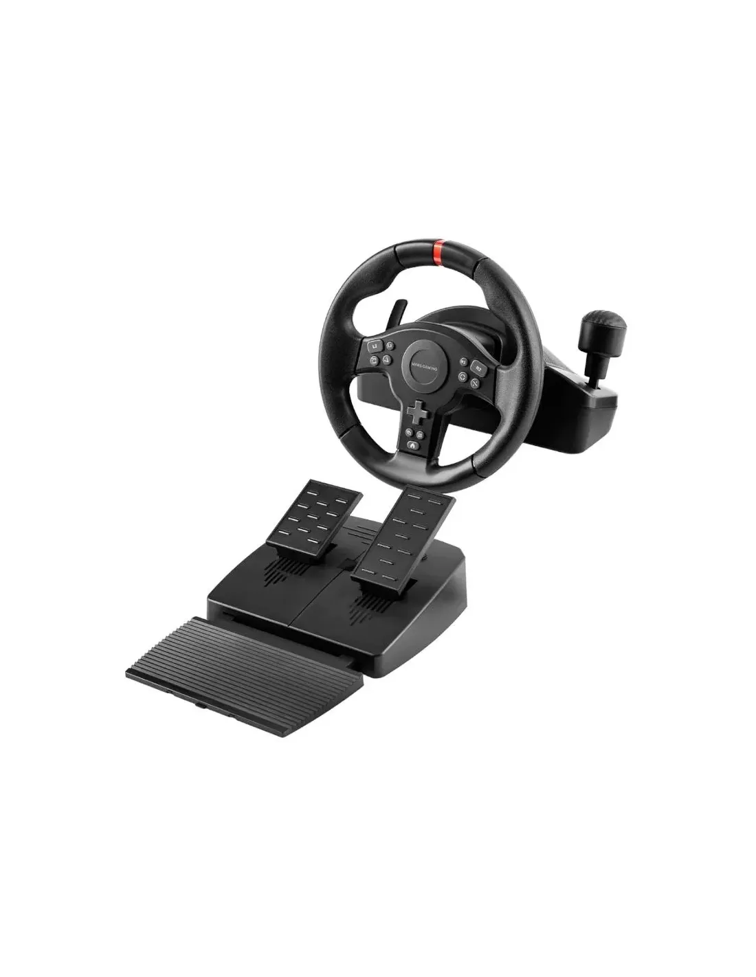 Volante de SimRacing 270° con vibración DriveSense y palanca secuencial integradaDa el salto perfecto al simracing con el MWH?RSXONE, el kit más equilibrado para empezar a competir con sensaciones realistas y control total, sin complicaciones. Aro de 240 mm, rotación de hasta 270°, tecnología Zero Dead Zone sin zonas muertas y sistema de vibración DriveSense para vivir cada curva. Incluye palanca de cambios secuencial integrada y pedalera XL de 2 pedales (acelerador y freno). Marca MARS GAMING Modelo MWHRSXONE Características - Botones: 11 botones, Pad de dirección, 2 levas digitales - PC input: X-input & D-input - Plataformas   PC   PS3   PS4   Switch   XBOX ONE   XBOX SERIES X / S - Rotación Volante: 270º - Motor: 1 x Motor de vibración - Diámetro aro volante: 240mm - Pedales: Acelerador y freno - Palanca de cambios: Secuencial - Material: ABS - Corriente: 0.02A - Voltaje: 5V - Cable: 1.8 metros USB-A     Dimensiones y peso - Volante: 260 x 275 x 240 mm  - Pedales: 380 x 233 x 140 mm  - Volante: 1045 g - Pedales: 764 g  Contenido - Volante - Pedales - Cable USB-C + USB-A - 5 x ventosas de fijación - 2 x abrazaderas mesa - Manual de usuario     Fecha de revisión 05-11-2025 por RTY