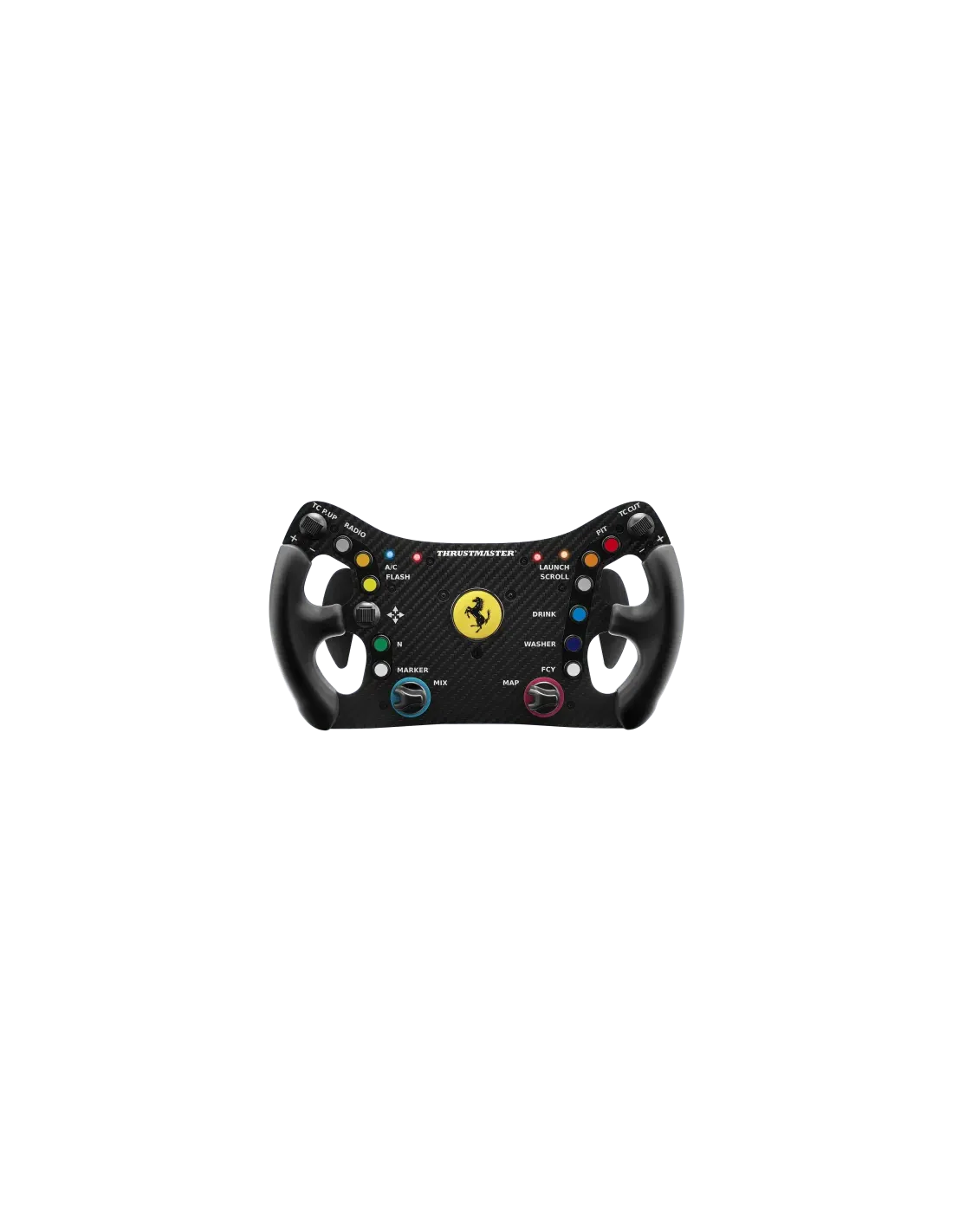 Thrustmaster Ferrari 488 GT3. Tipo de dispositivo: Volante, Plataformas de juego soportadas: PC, Botones de función control para gaming: Cruceta, Botón menú, Botón modo, Botón de arranque. Tecnología de conectividad: Alámbrico. Color del producto: Negro, Material de la carcasa: Carbono. Fuente de energía: Cable. Sistema operativo Windows soportado: Windows 10, Windows 7, Windows 8
