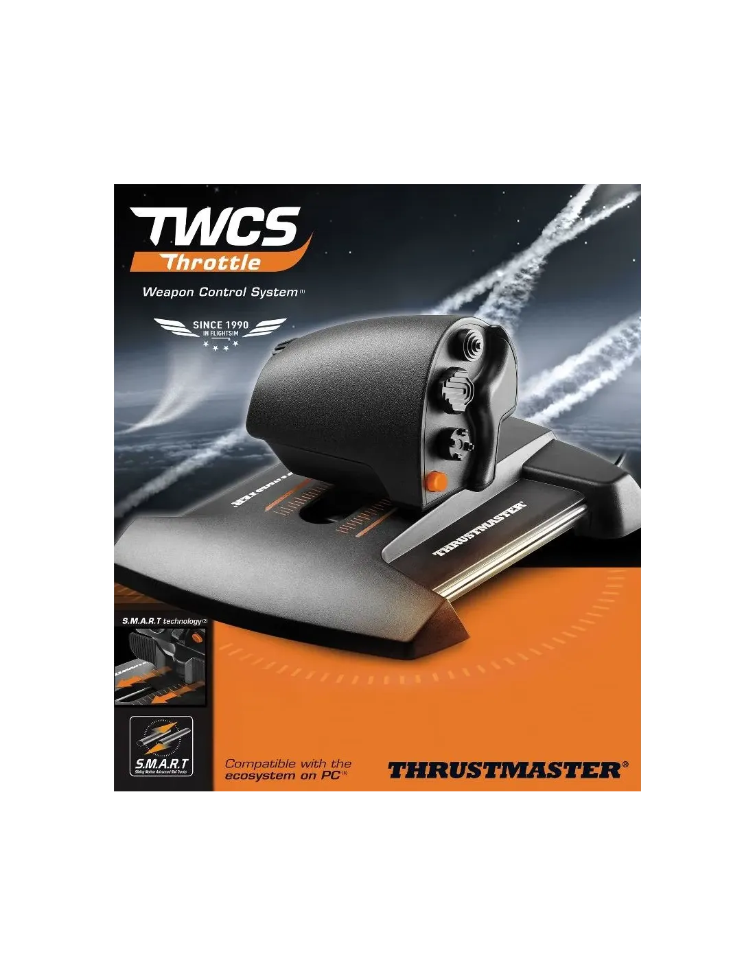 Este producto forma parte de una gama de periféricos para simulación de vuelo que se pueden usar juntos unos con otros: un ecosistema completo que incluye la palanca de vuelo FCS, el mando de potencia TWCS, los pedales de timón TFRP y los paneles de cabina MFD (Multi-Functional Display). Estos elementos son compatibles con o sin el software de programación avanzado T.A.R.G.E.T.