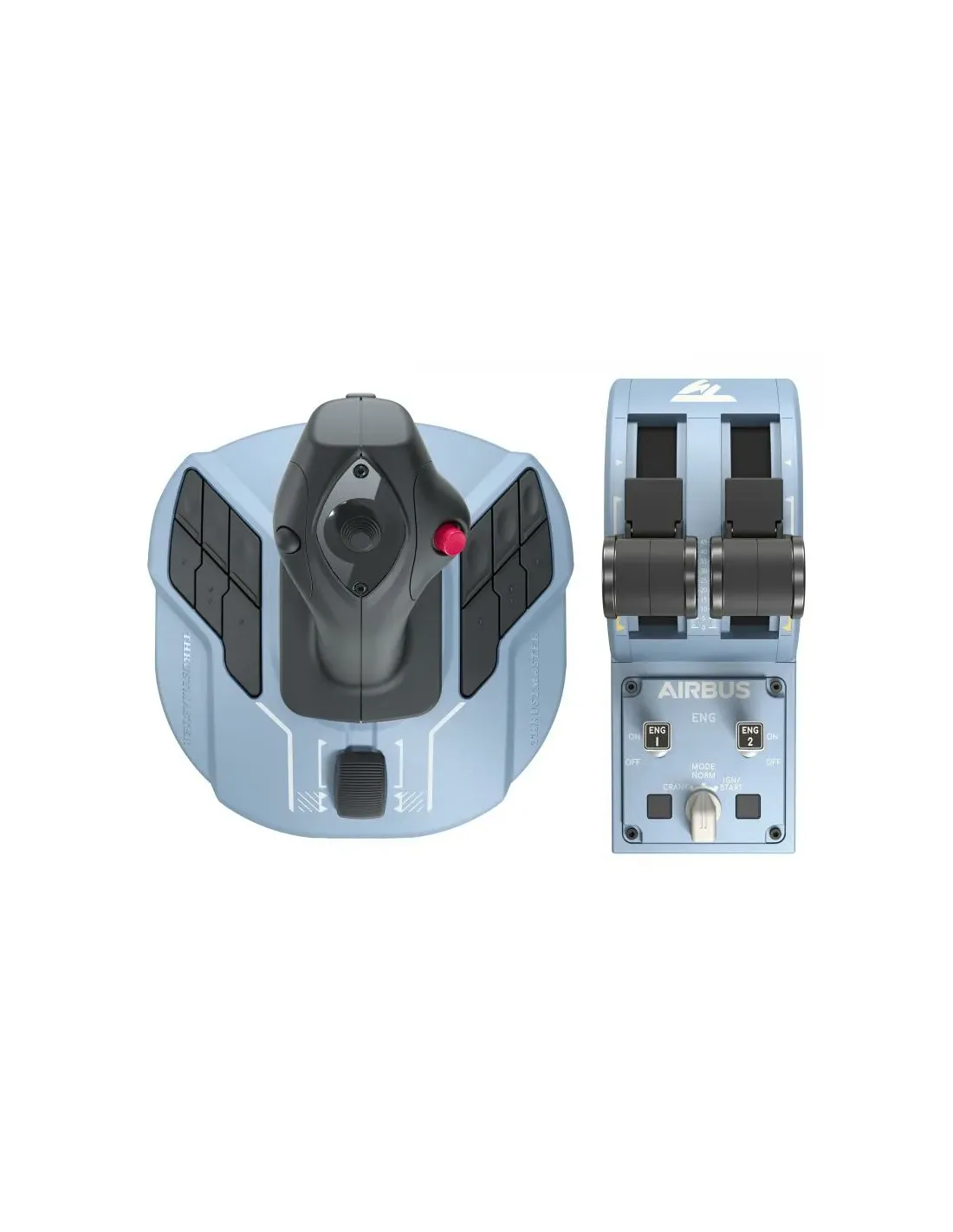 Thrustmaster Airbus Edition. Tipo de dispositivo: Palanca de mando, Plataformas de juego soportadas: PC, Tecnología de control para juegos: Analógico/Digital. Tecnología de conectividad: Alámbrico, Interfaz del dispositivo: USB, Conector USB: USB Tipo C. Color del producto: Negro, Azul. Ancho: 255 mm, Profundidad: 145 mm, Altura: 85 mm. Ancho del paquete: 212 mm, Profundidad del paquete: 386 mm, Altura del paquete: 251 mm