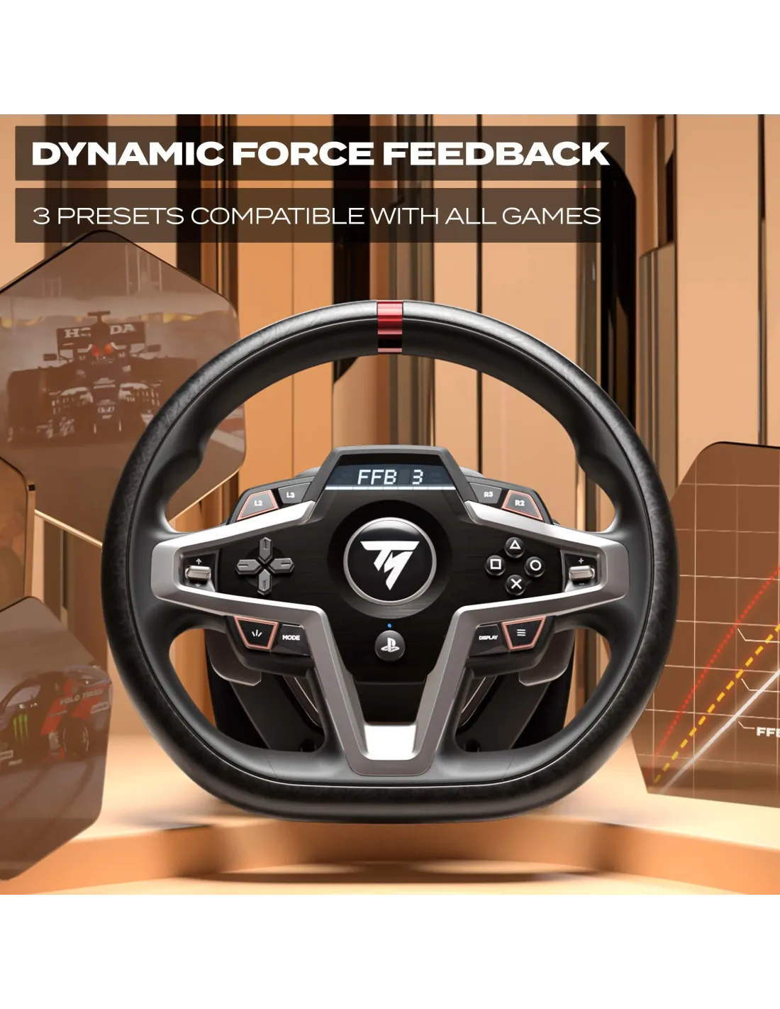 Thrustmaster T248. Tipo de dispositivo: Volante + Pedales, Plataformas de juego soportadas: PC, PlayStation 4, PlayStation 5. Tecnología de conectividad: Alámbrico. Color del producto: Negro. Fuente de energía: Cable. Peso: 7,26 kg, Dimensiones del volante (AnxLxAl): 280 x 280 x 300 mm, Peso del volante: 2,7 kg