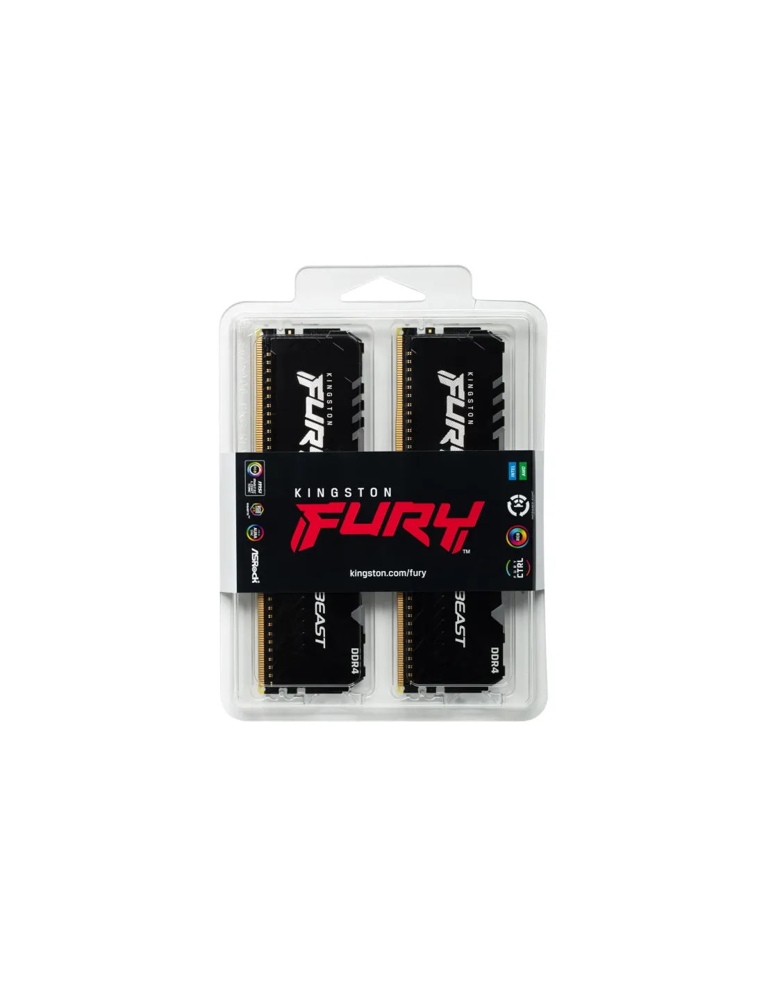 Kingston Technology FURY Beast RGB. Componente para: PC, Memoria interna: 16 GB, Diseño de memoria (módulos x tamaño): 2 x 8 GB, Tipo de memoria interna: DDR4, Forma de factor de memoria: 288-pin DIMM, Latencia CAS: 16