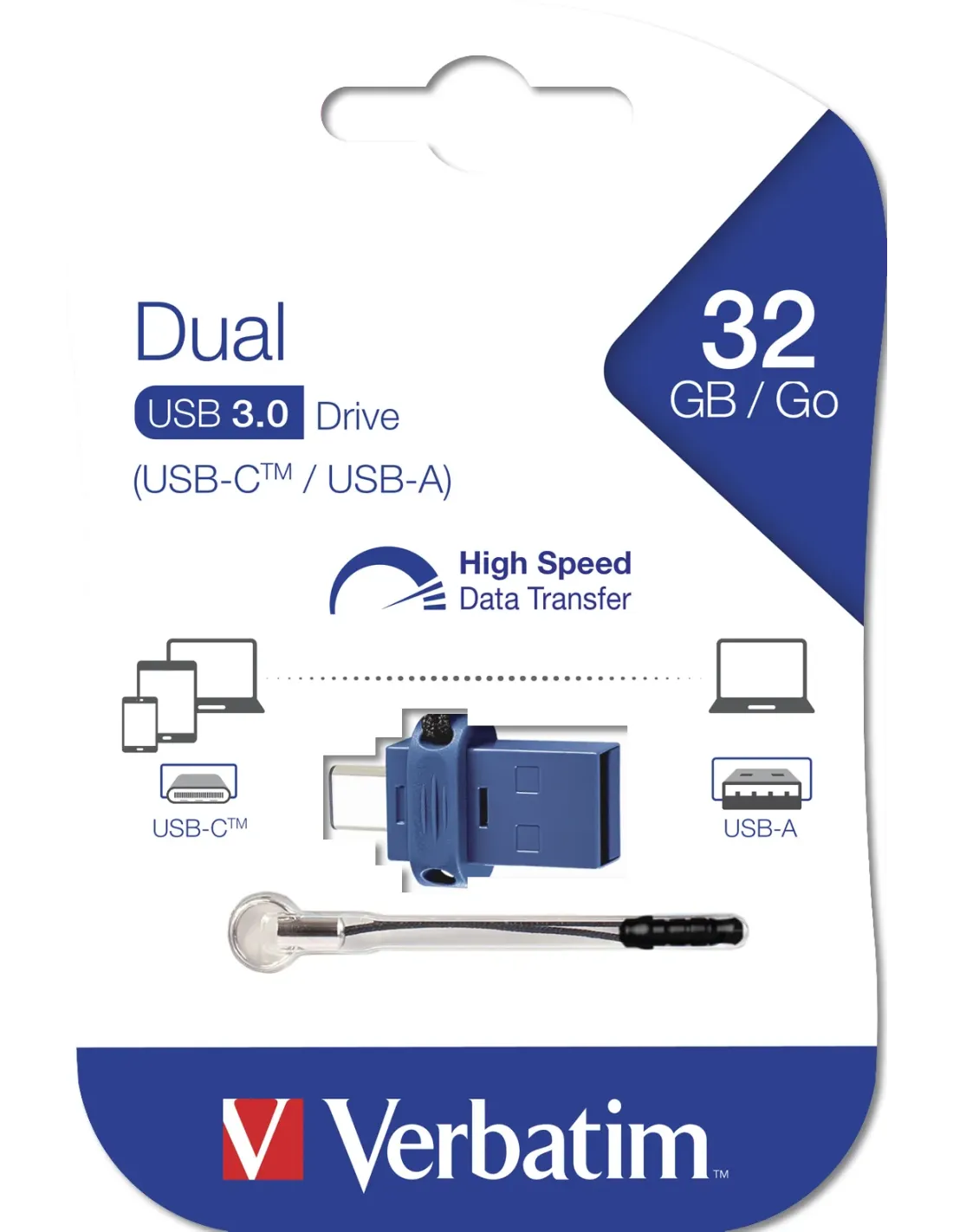 Verbatim Dual - Unidad USB 3.0 de 32 GB - USB-C / USB-A - Azul