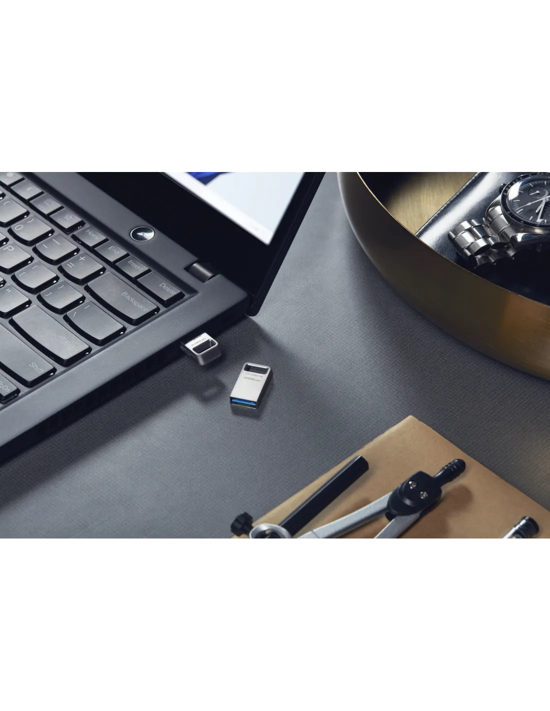 DataTraveler® Micro Unidad Flash USB con diseño ultrapequeño en metal de alta calidadDataTraveler® Micro es una unidad USB ultracompacta y ligera, ideal como espacio de almacenamiento plug-and-stay, compatible con ordenadores, impresoras, consolas de juegos y mucho más. La unidad tiene una carcasa metálica de alta calidad y bajo perfil y una ranura de acoplamiento integrada para evitar interferencias cuando se conecta a los puertos USB. DT Micro ofrece una velocidad máxima de USB 3.2 Gen 1 de 200 MB/s de lectura1 y una capacidad máxima de 256 GB2 para transferir y almacenar rápidamente archivos de gran tamaño como películas, música, juegos y fotos. Diseño ultrapequeño, plug-and-stayCarcasa metálica de alta calidad y bajo perfil diseñada para conectarse a un puerto USB sin crear interferencias15 veces más rápido que las unidades USB 2.0 estándarAlmacena y transfiere contenido rápidamente con velocidades USB 3.2 de alto rendimiento de hasta 200 MB/s de lecturaMás capacidadesAlmacenamiento de alta capacidad de hasta 256 GB