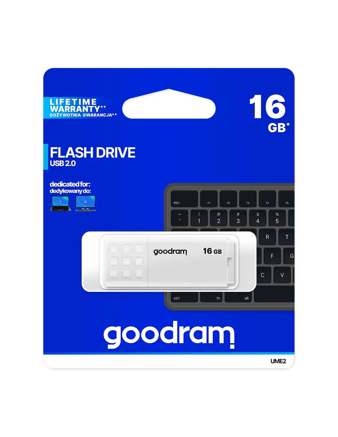 Goodram UME2, 16 GB, USB tipo A, 2.0, 20 MB/s, Tapa, Blanco
