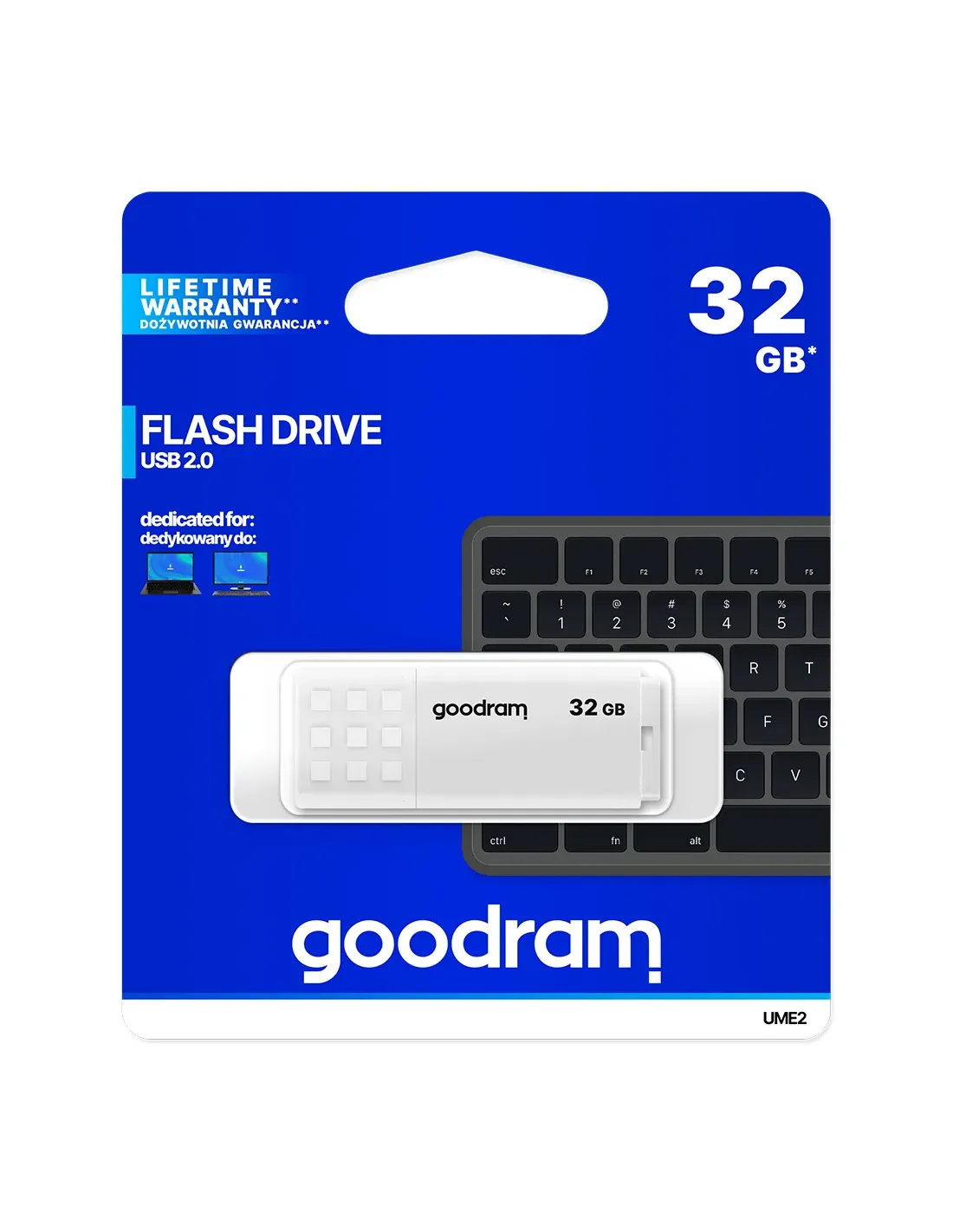 Goodram UME2, 32 GB, USB tipo A, 2.0, 20 MB/s, Tapa, Blanco