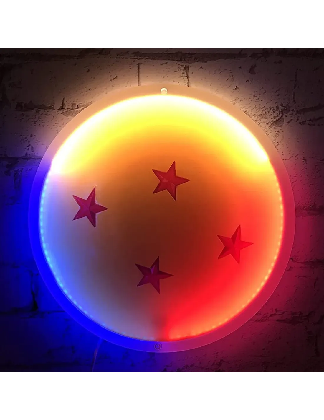 Teknofun presenta este mural luminoso de Neón de una bola de Dragón, dela serie anime Dragon Ball Z. Mide unos 30 cm con luz LED, botónON/OFF y batería (incluida).