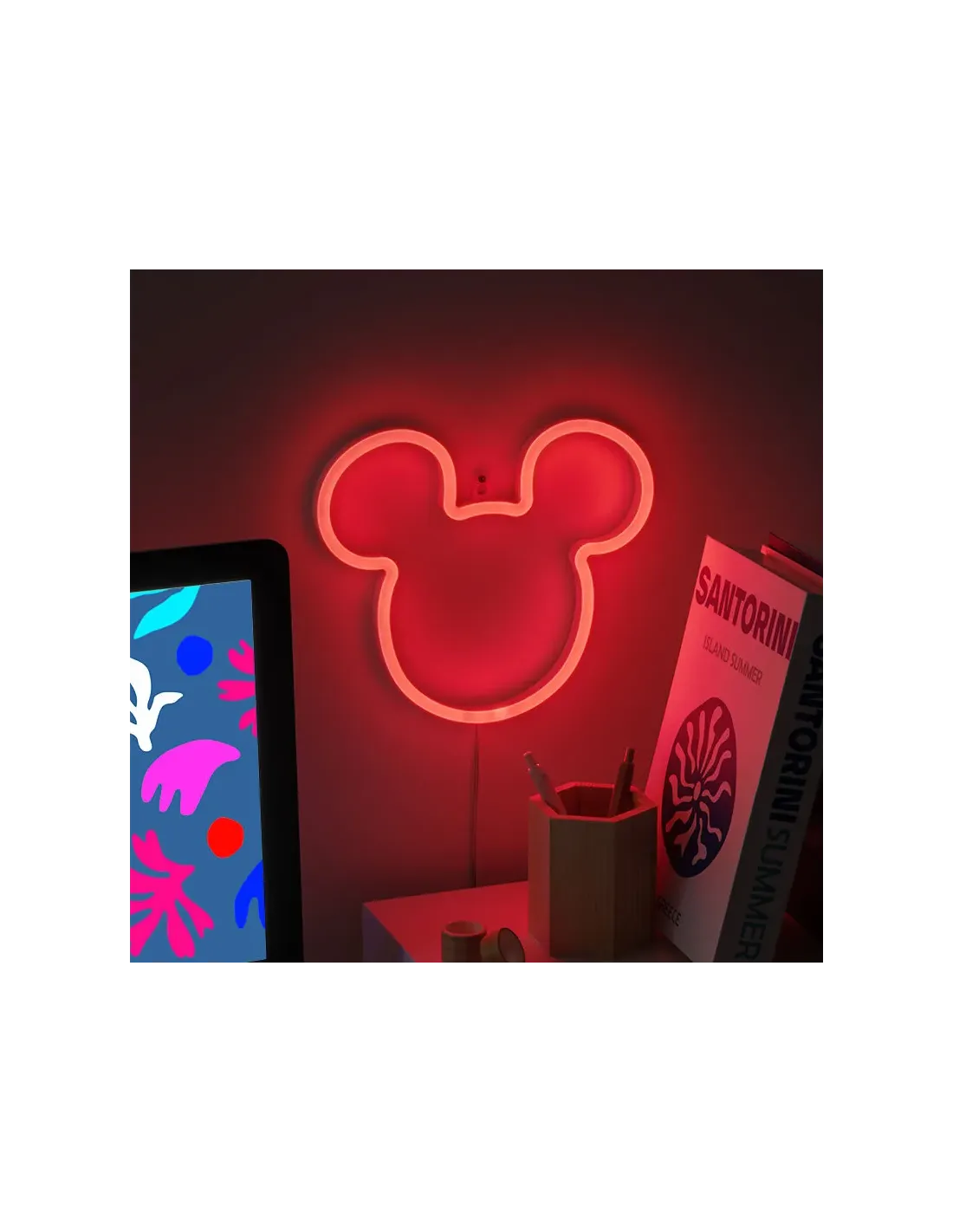 * PERSONAJEMickey Mouse* FRANQUICIADisney* TIPOLuz de neón LED montable en la pared* DIMENSIONESAltura: 21,8 cm* DISEÑO Y FUNCIONALIDADForma de la silueta clásica de Mickey MouseEmite un brillo suave y cálidoTecnología LED de bajo consumo energéticoLarga vida útil* USO Y APLICACIONESFácil de instalar en la paredIdeal para dormitorios, salas de estar, salas de juegos o eventos temáticosElemento decorativo y funcionalTamaño compacto que destaca sin ocupar mucho espacio* REGALOPerfecto para fans de Disney de todas las edadesAñade un toque nostálgico, alegre y mágico al hogar