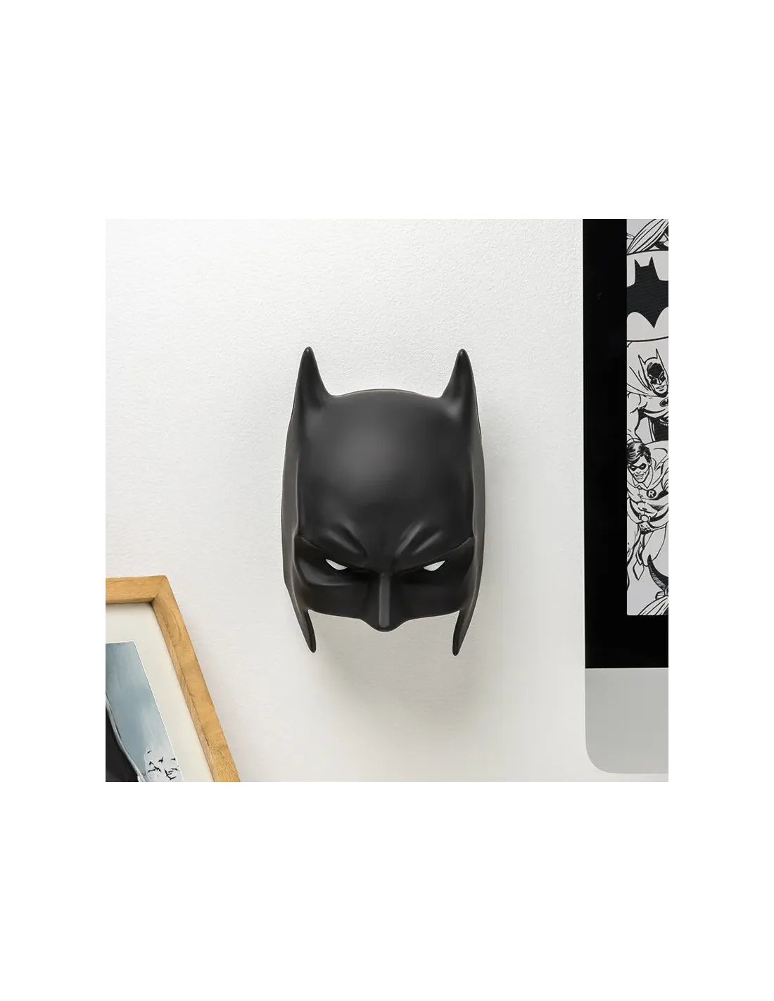 Características de la Máscara con Luz Paladone DC BatmanLa máscara con luz Paladone DC Batman es el accesorio perfecto para los fans del Caballero Oscuro que desean iluminar su espacio con un toque heroico. Con un diseño fiel al icónico personaje y detalles cuidados, combina función y estética en una pieza decorativa que resalta en cualquier ambiente.Diseño auténtico y licenciadoEste modelo reproduce con gran precisión la máscara de Batman, capturando su esencia y estilo. Además, cuenta con licencia oficial DC Comics, lo que garantiza autenticidad y calidad en los acabados.Diseño detallado y realistaLicencia oficial DC ComicsAcabado de alta calidadIluminación LED versátilIncorpora luz LED blanca que aporta un ambiente único y acogedor, ideal tanto para iluminar de forma suave como para funcionar como pieza decorativa. Su alimentación dual permite usarla con cable USB o pilas, adaptándose a distintas necesidades.Luz LED blanca brillanteFunciona con cable USB (incluido) o 3 pilas AAA (no incluidas)Bajo consumo energéticoAdaptable a cualquier espacioGracias a su tamaño de 21 cm de altura, la lámpara puede colocarse en una mesa, estantería o montarse en la pared, integrándose fácilmente en dormitorios, salones u oficinas temáticas.Altura de 21 cmUso sobre superficie o montaje muralFácil instalaciónUn regalo ideal para fansPor su diseño, funcionalidad y licenciamiento oficial, es un detalle perfecto para seguidores de Batman de todas las edades. Aporta estilo y personalidad a cualquier rincón, combinando decoración y luz en un solo elemento.Apto para todas las edadesDiseño icónico reconocido a nivel mundialIdeal para coleccionistas y entusiastas de DC Comics