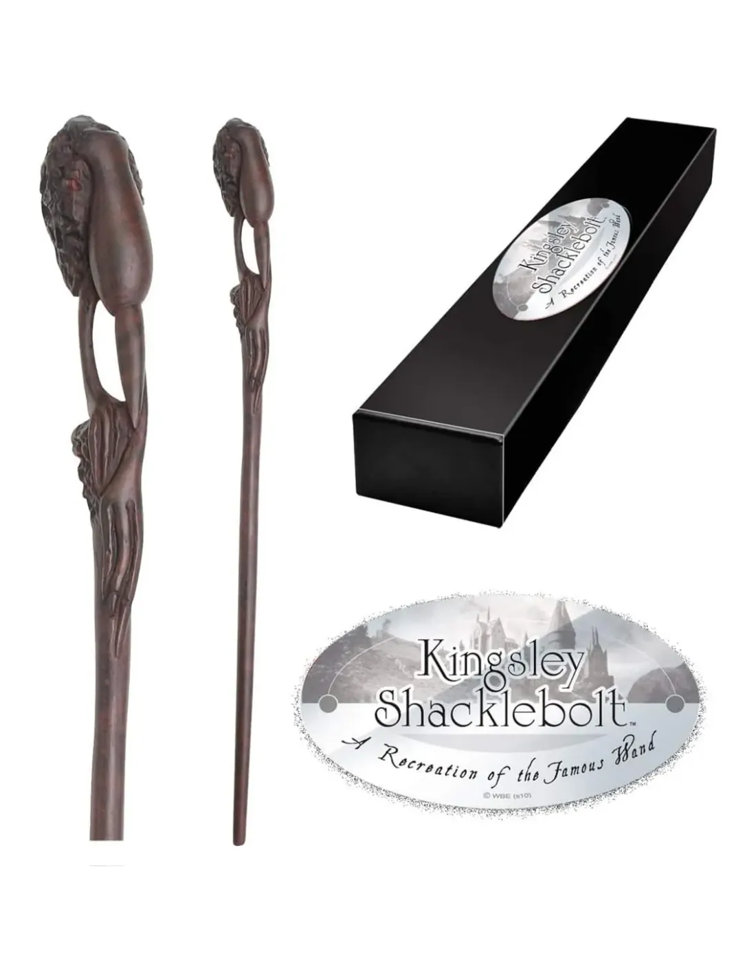 Varita de Kingsley Shaklebolt pintada a mano y presentada en cajadecorada de colección con placa identificativa . Basada en las películas de"Harry Potter".