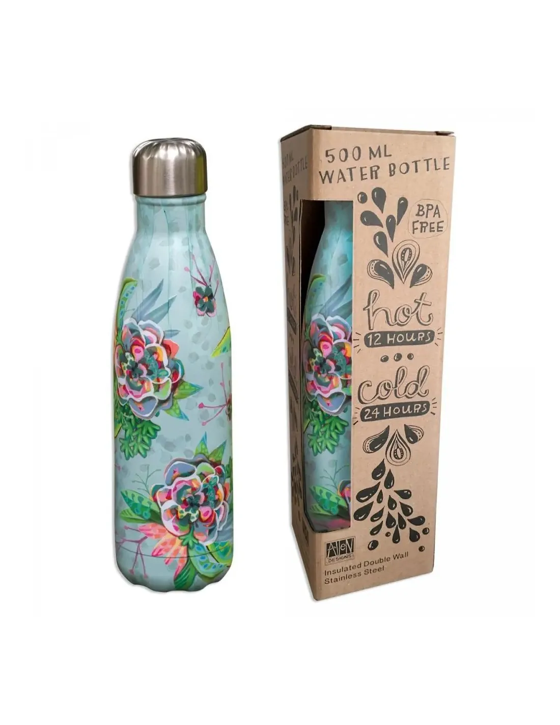 Botella isotérmica de acero inoxidable de doble pared de alta calidad. Sin BPA y completamente hermética, esta botella mantendrá tus bebidas favoritas calientes o frías entre 12 y 24 horas. Capacidad: 50cl. Diseño original y colorido de la artista Michelle Allen para la colección Allen Designs.