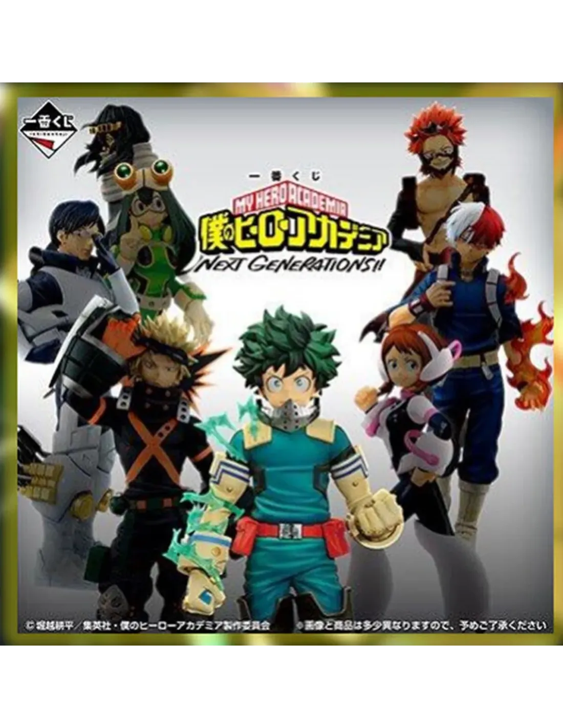 Ichiban Kuji, que significa "lotería número 1", es un sistema de lotería deejecución limitada creado por Bandai. IMPORTANTE: CADA TICKET SERECOMIENDA VENDER A 15 A PVP. EL PREMIO CONSIDERADO COMO "LASTONE" O ULTIMO PREMIO, SE ENTREGA UNICAMENTE TRAS EL ULTIMOTICKET VENDIDO y no esta contabilizada en el lote de articulos sino que esadicional. Este KUJI tiene un total de 80 premios, sin contar el LAST ONE yposee un buen numero de figuras de todo tipo y otros premios increibles.En este tipo de lotería los premios varían, pero el premio mayor que es elUltimo Premio , cuales son las Figuras Ichibansho.Estas figuras son figuras de 6 pulgadas de alto, a veces más grandes, yson geniales para cualquier fanático de la serie.El lote contiene:A- Figura Izuku Midoriya 17.5cm 2 udsB- Figura Katsuki Bakugo 18cm 2 udsC- Figura Uraraka Ochaco 16,5cm 1 udD- Figura Tenya Iida 19cm 1 udE- Figura Shoto Todoroki 18,5cm 2 udsF - Figura Tsuyu Asui 16cm 1 udG - Figura Eijiro Kirishima 18cm 1 udH- Figura Ereaser Head 20cm 1 udI - Ilustracion 11cm 22 uds 12 estilosJ- Servilleta Coleccionista 25cm 23 uds 11 estilosK- Amuleto 6.5cm 24 uds 13 estilos