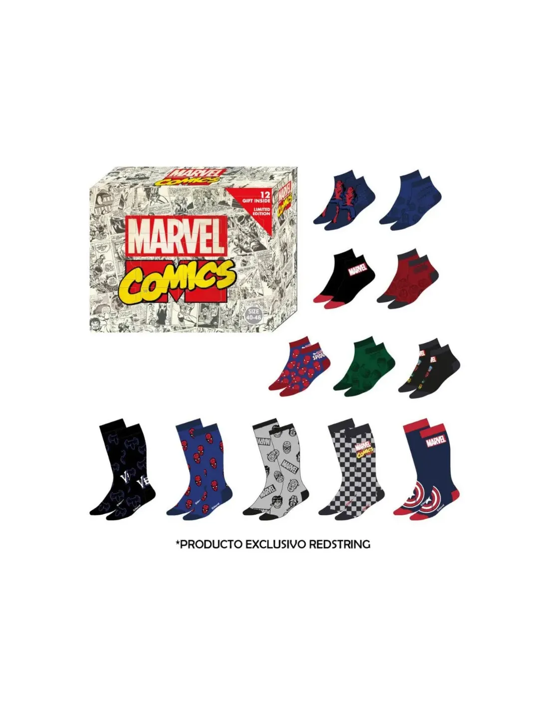 Características de la Caja Regalo 12 Pares Calcetines Marvel Talla 40/46Si eres fan del universo Marvel o buscas un regalo original para un amante de los cómics, esta **caja regalo con 12 pares de calcetines Marvel** es la opción perfecta. Diseñada para tallas 40 a 46, ofrece una combinación ideal entre comodidad diaria y estilo inspirado en superhéroes icónicos. Cada par presenta un diseño exclusivo basado en personajes clásicos de Marvel, aportando color y carácter a tu vestuario diario.Diseños variados con licencia oficial MarvelCada calcetín es una representación vibrante de un héroe del universo Marvel, con ilustraciones llenas de color y detalles reconocibles para cualquier fan. Desde **Spider-Man** hasta el **Capitán América**, esta colección incluye una selección diversa que permite cambiar de estilo cada día, manteniendo siempre el espíritu de tus personajes favoritos.12 pares con diseños diferentesInspirados en personajes icónicos de Marvel ComicsLicencia oficial Marvel garantizadaComodidad diaria con tejido suave y resistenteFabricados por **Cerdá Group**, especialistas en productos textiles licenciados, estos calcetines ofrecen una excelente combinación de suavidad, elasticidad y durabilidad. Están pensados tanto para el uso diario como para regalar, gracias a su presentación en una caja decorativa que potencia su valor como producto de colección o detalle especial.Talla única: 40 - 46Tejido de poliestér cómodo y elásticoIncluye caja regalo decorativaUn regalo perfecto para fans de los cómicsEsta caja regalo es ideal para cualquier ocasión: cumpleaños, celebraciones o simplemente como detalle original para fans del universo Marvel. Su presentación cuidada y la variedad de estilos aseguran una experiencia completa, tanto para quien la recibe como para quien la regala.Presentación cuidada en caja regaloIdeal para coleccionistas y seguidores de los superhéroes