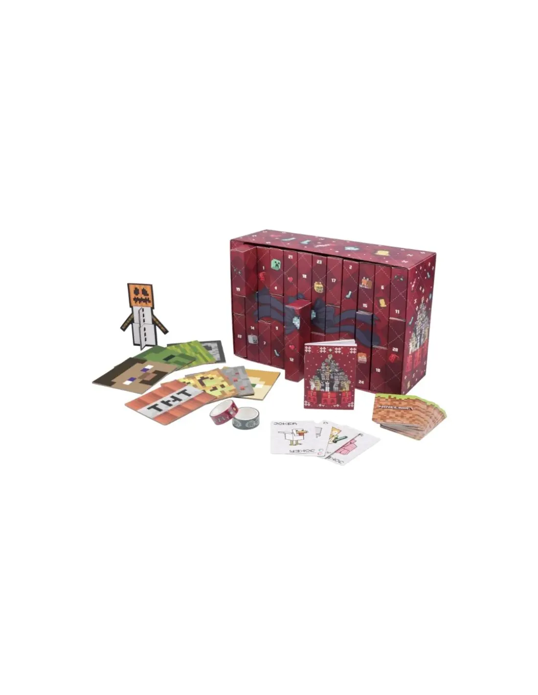 Calendario de Adviento Minecraft 24 días, con packaging libre de plástico, y que contiene, pegatinas, imánes, posavasos, vinilos decorativos de pared, decoraciones, marcapáginas magnético, cintaadhesiva, cuaderno y juegos de cartas.