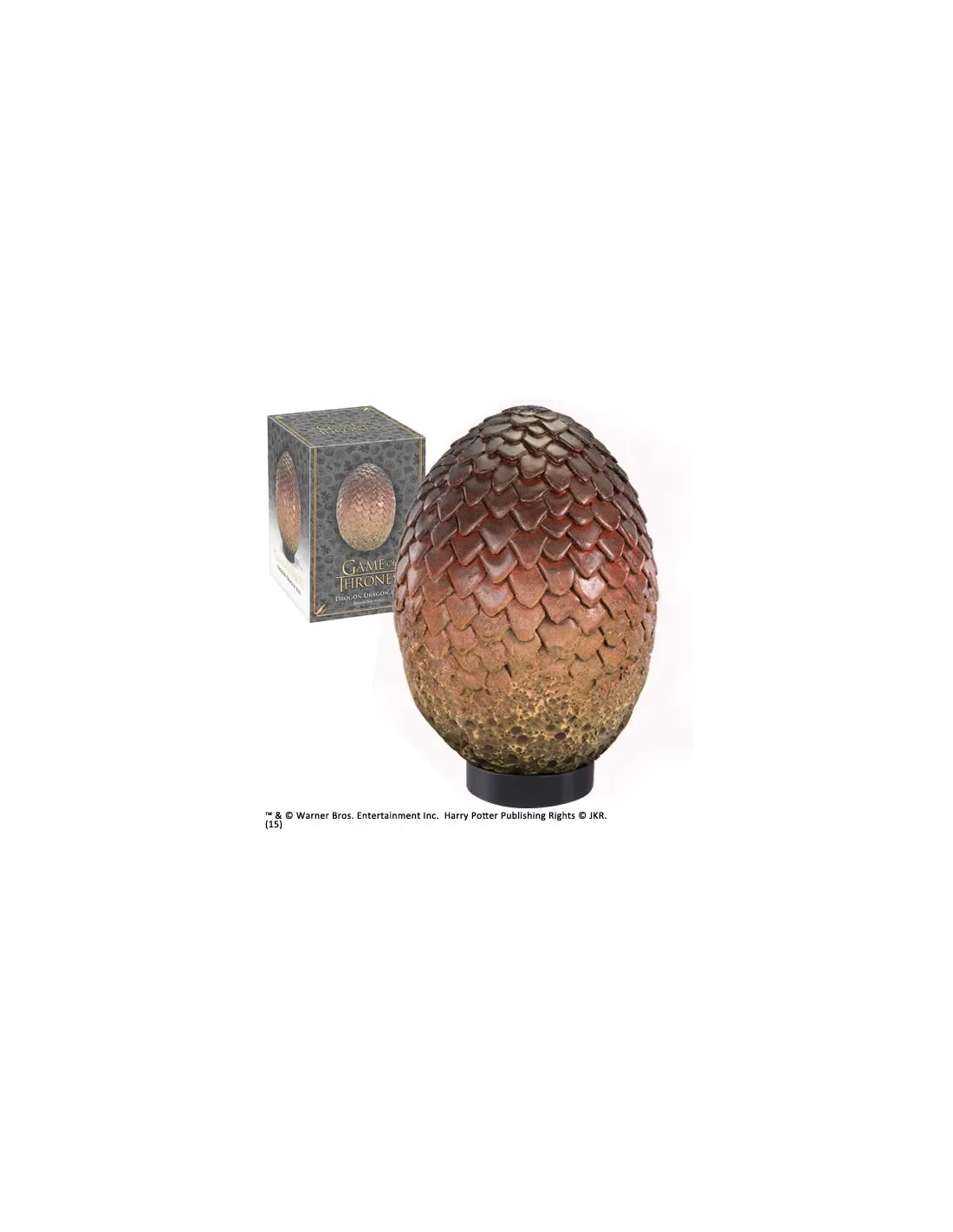 De la prestigiosa marca Noble Collection nos llega esta réplica del huevo deldragón Drogon hecha en resina. Está basada en la serie de TV de Juego deTronos. Esta figura viene lujosamente presentado en una caja. Un producto queningún fan de Juego de Tronos puede dejar de tener.
