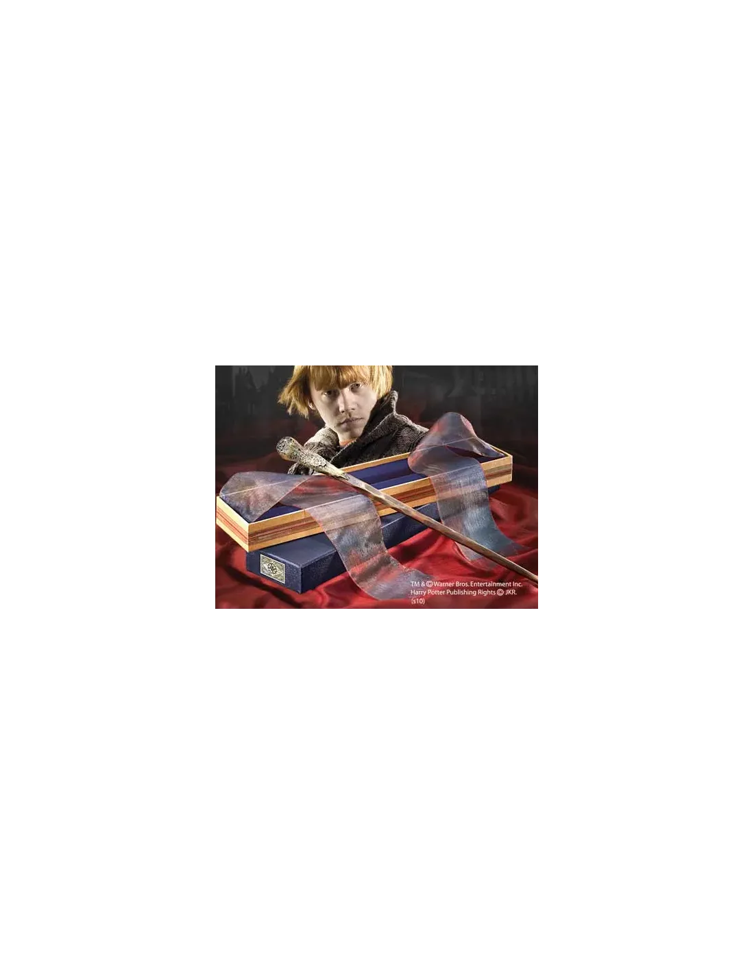 Réplica de la varita de Ron Weasley en su caja original de la tienda deOlivander de las películas de Harry Potter .
