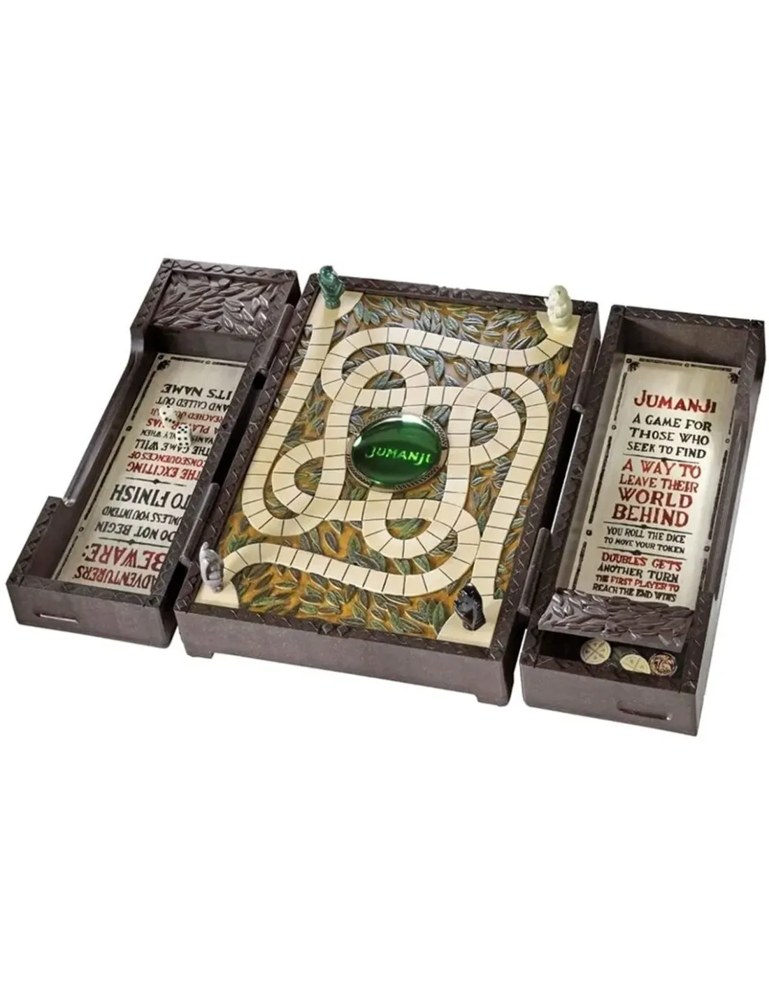 Noble presenta la réplica del juego de mesa de Jumanji, una réplica fiel yoficial del icónico juego de la película "Jumanji" (1995). Incluye piezas dejuego, dados y fichas recreadas con gran detalle. El juego mide40x27,95x10,16 cm cerrado. Sin duda una gran pieza de coleeccionistapara todos los públicos. Se puede jugar.