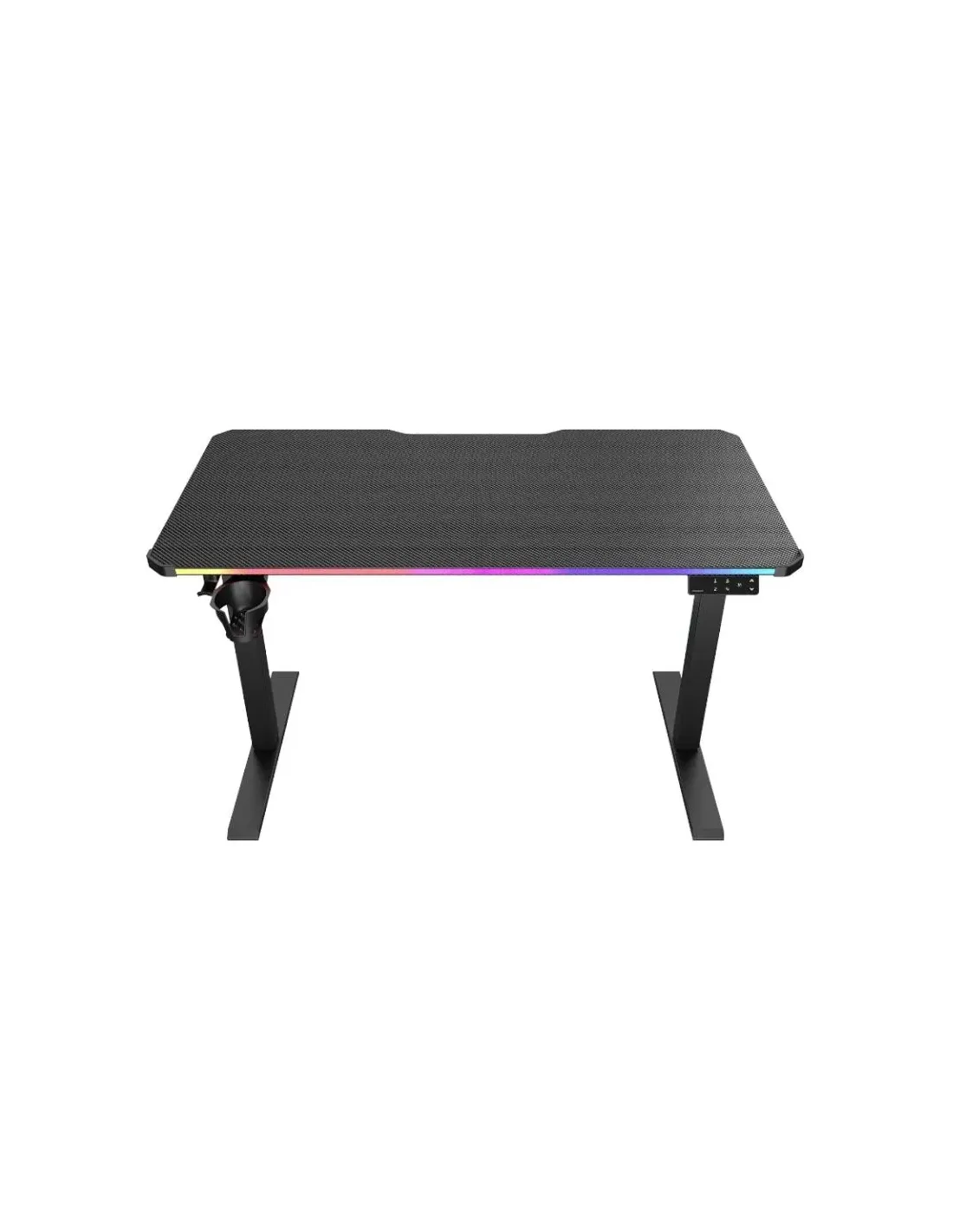 Marca Cougar Modelo 3MARS1SB.0001 Características - La iluminación RGB  - Ajuste de altura se detiene automáticamente al detectar resistencia  - El eje de transmisión y los protectores del motor evitan contactos accidentales o enganches en la ropa. - Gancho para auriculares - Bandeja para cables - Portavasos giratorio  - El panel con puerto USB-C  - Voltaje requerido para ajuste eléctrico: 100~240 V CA - Capacidad total de peso del escritorio: 80 kg Dimensiones - 120 x 60 x 1,8 cm - Altura del escritorio: 730~1180 mm Fecha de revisión 02-01-2026 por RTY