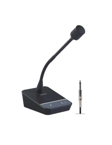 El MICSET-D32J es un micrófono de sobremesa con cápsula dinámica cardioide, pensado para entornos de comunicación, conferencias y aplicaciones profesionales donde se requiere claridad de voz y fiabilidad. Su diseño combina un flexo ajustable con base estable y conectividad directa mediante jack de 6,3 mm mono, ofreciendo un uso sencillo y práctico.