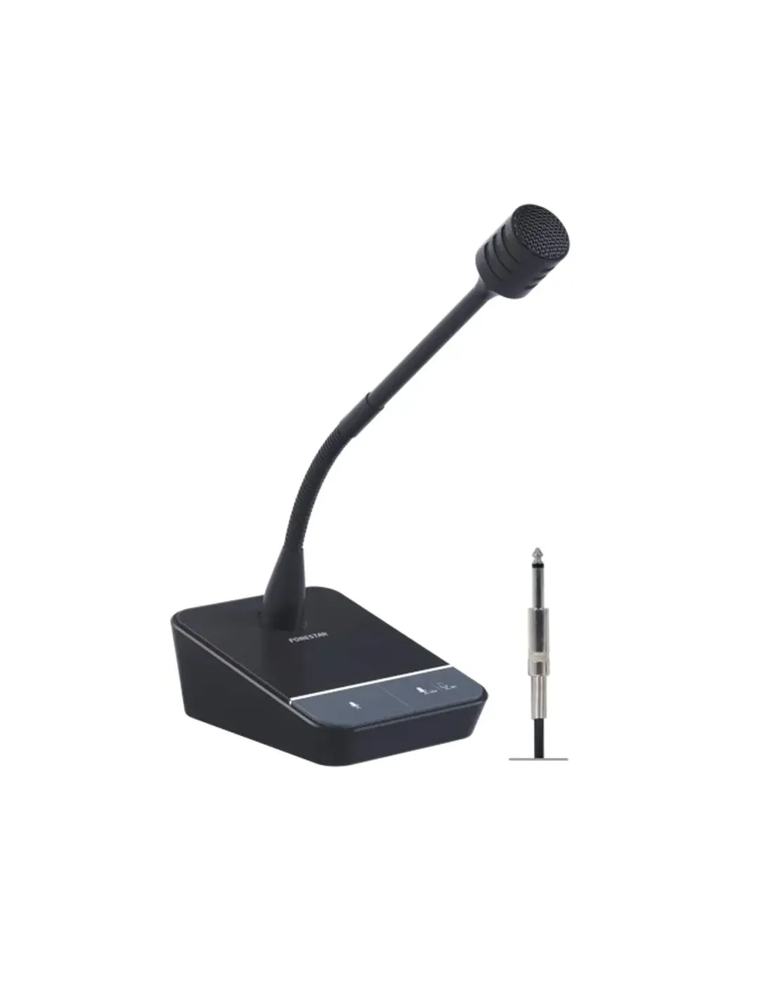 Características del MICSET-D32JEl MICSET-D32J es un micrófono de sobremesa con cápsula dinámica cardioide, pensado para entornos de comunicación, conferencias y aplicaciones profesionales donde se requiere claridad de voz y fiabilidad. Su diseño combina un flexo ajustable con base estable y conectividad directa mediante jack de 6,3 mm mono, ofreciendo un uso sencillo y práctico.Cápsula cardioide para una captación precisaGracias a su patrón polar unidireccional cardioide, este micrófono reduce eficazmente el ruido ambiental, centrandose en la voz del orador. Esto lo convierte en una opción ideal para entornos con posibles interferencias sonoras.Respuesta en frecuencia: 100 - 15.000 HzSensibilidad: -55 dB ±3 dB a 1 kHzImpedancia: 600 ?Rendimiento equilibrado y sin distorsionesEl MICSET-D32J ofrece un rango dinámico de 78 dB y un nivel máximo de presión sonora de 110 dB, manteniendo la calidad incluso en volúmenes elevados. Además, garantiza un bajo nivel de ruido y una distorsión (THD) inferior al 1 %.Ruido equivalente: 32 dBRelación señal/ruido: 75 dBDistorsión armónica total: <,1 %Diseño funcional con controles integradosSu pulsador ON-OFF/PTT permite un control directo durante su uso, aportando comodidad en conferencias o sistemas de comunicación. Además, cuenta con un flexo de 32 cm que facilita el ajuste de posición, mientras que la base de sobremesa asegura estabilidad.Flexo de 32 cm de alturaBase de sobremesa: 93 x 46 x 122 mmPeso total: 0,62 kgConectividad sencilla y robustaEl micrófono incluye un cable de 1,5 m con conector jack de 6,3 mm mono, de línea desbalanceada, garantizando compatibilidad con sistemas de audio habituales y ofreciendo instalación inmediata.Cable integrado de 1,5 mConector jack 6,3 mm monoLínea desbalanceadaResistencia y fiabilidadEl MICSET-D32J está diseñado para soportar un amplio rango de temperaturas y humedad, lo que asegura su durabilidad en distintos entornos de trabajo.Temperatura de funcionamiento: -20 °C a 50 °CTemperatura de almacenamiento: -25 °C a 70 °CHumedad relativa: 0 - 90 %