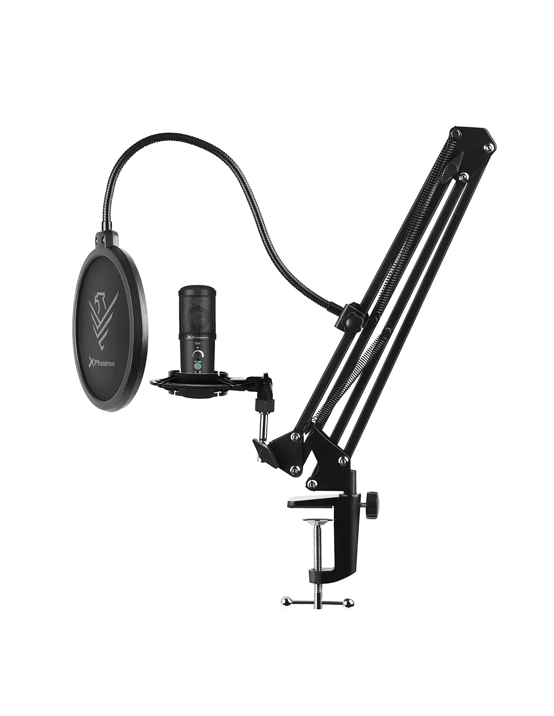 Kit microfono phoenix streamcast pro gaming conector usb - brazo articulado - filtro antipop y montura antivibración
