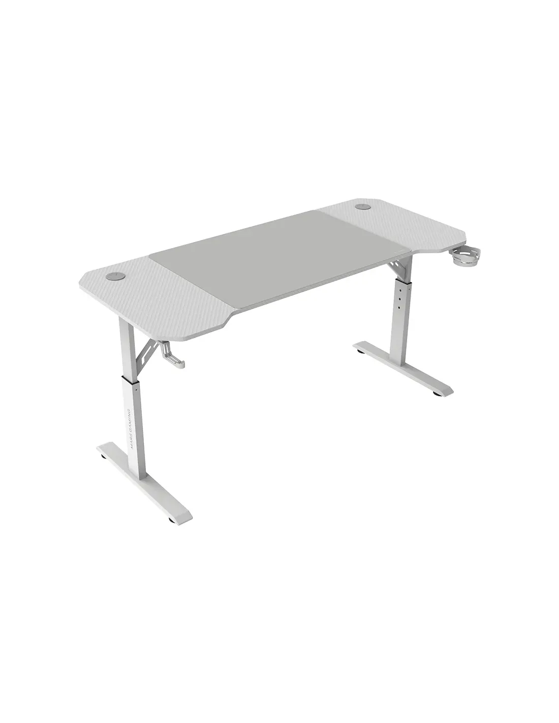 Mars Gaming MGD-ERGO140, Mesa Altura Ajustable 3 Posiciones, Superficie Ergonómica, Estructura Metálica, Alfombrilla XXL, Soporte Auriculares + Bebida, Gestión Cableado, Mesa Gaming 140x60cm, Blanco, Derecho, Forma rectangular, Tableros de partículas, Acero, Juego, Fibra de carbono