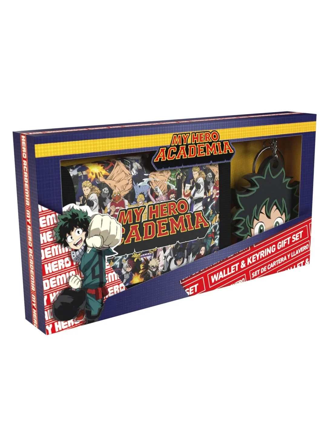 CYP Brands presenta dentro de su línea de productos de My Hero Academia este set regalo compuesto por una cartera y un llavero. En la cartera aparecen diferentes personajes del anime mientras que el llavero es la cara de Deku.