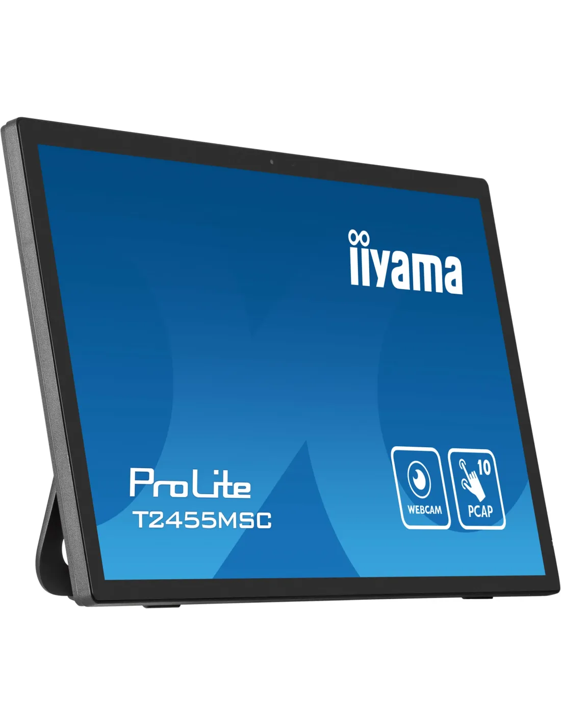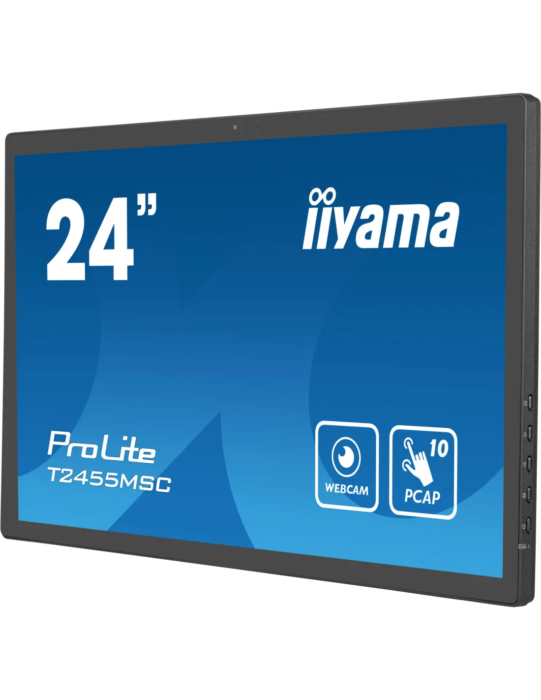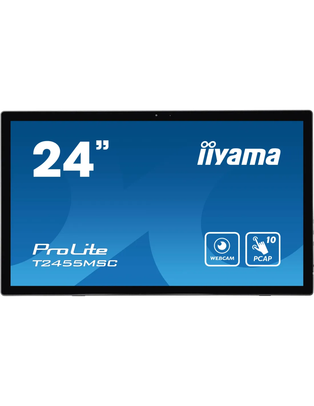 iiyama T2455MSC-B1. Diseño de producto: Pantalla plana para señalización digital. Diagonal de la pantalla: 61 cm (24"), Tecnología de visualización: LED, Resolución de la pantalla: 1920 x 1080 Pixeles, Brillo de pantalla: 400 cd / m², Tipo HD: Full HD, Pantalla táctil. Color del producto: Negro