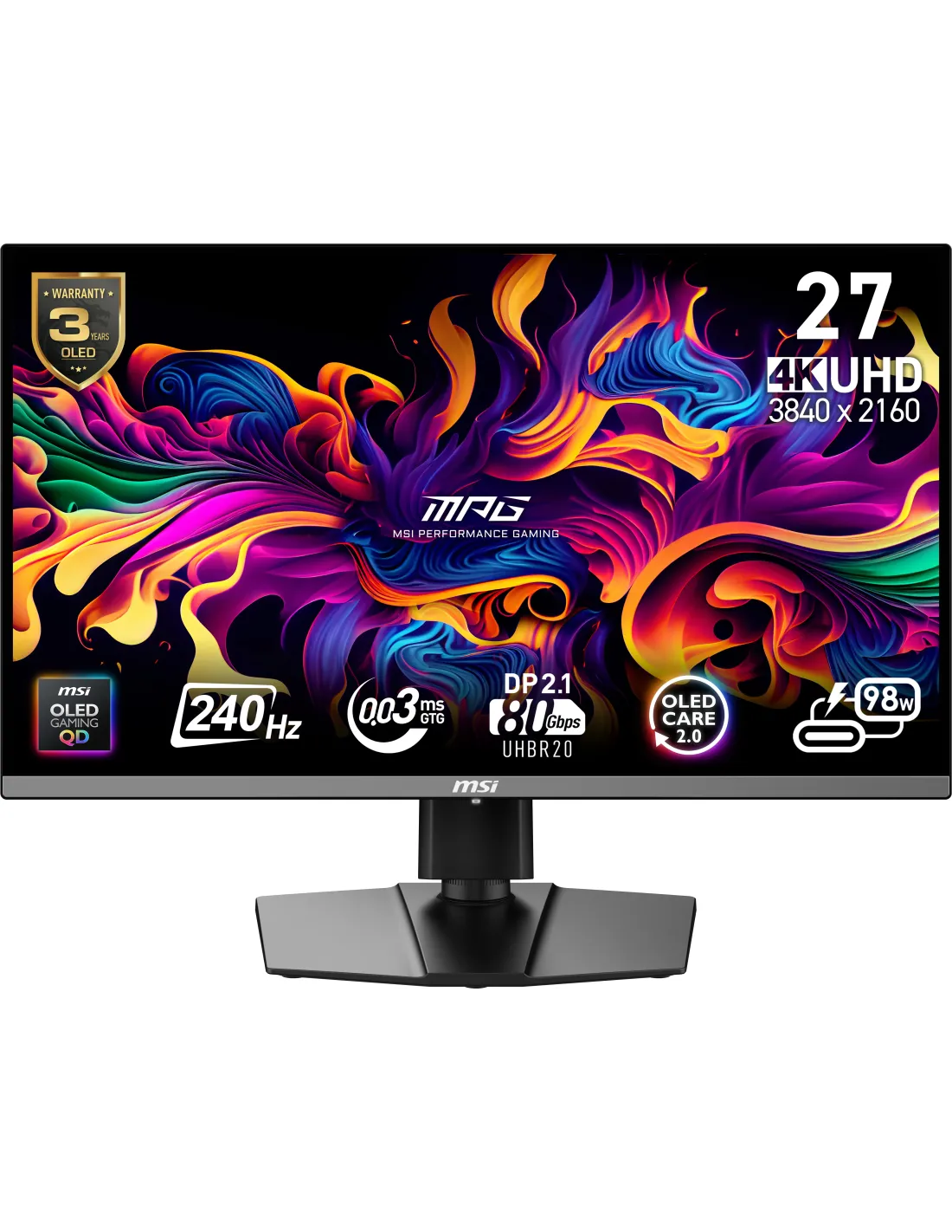 MSI MPG 272URX QD-OLED, 67,3 cm (26.5"), 3840 x 2160 Pixeles, 4K Ultra HD, QD-OLED, 0,03 ms, Negro